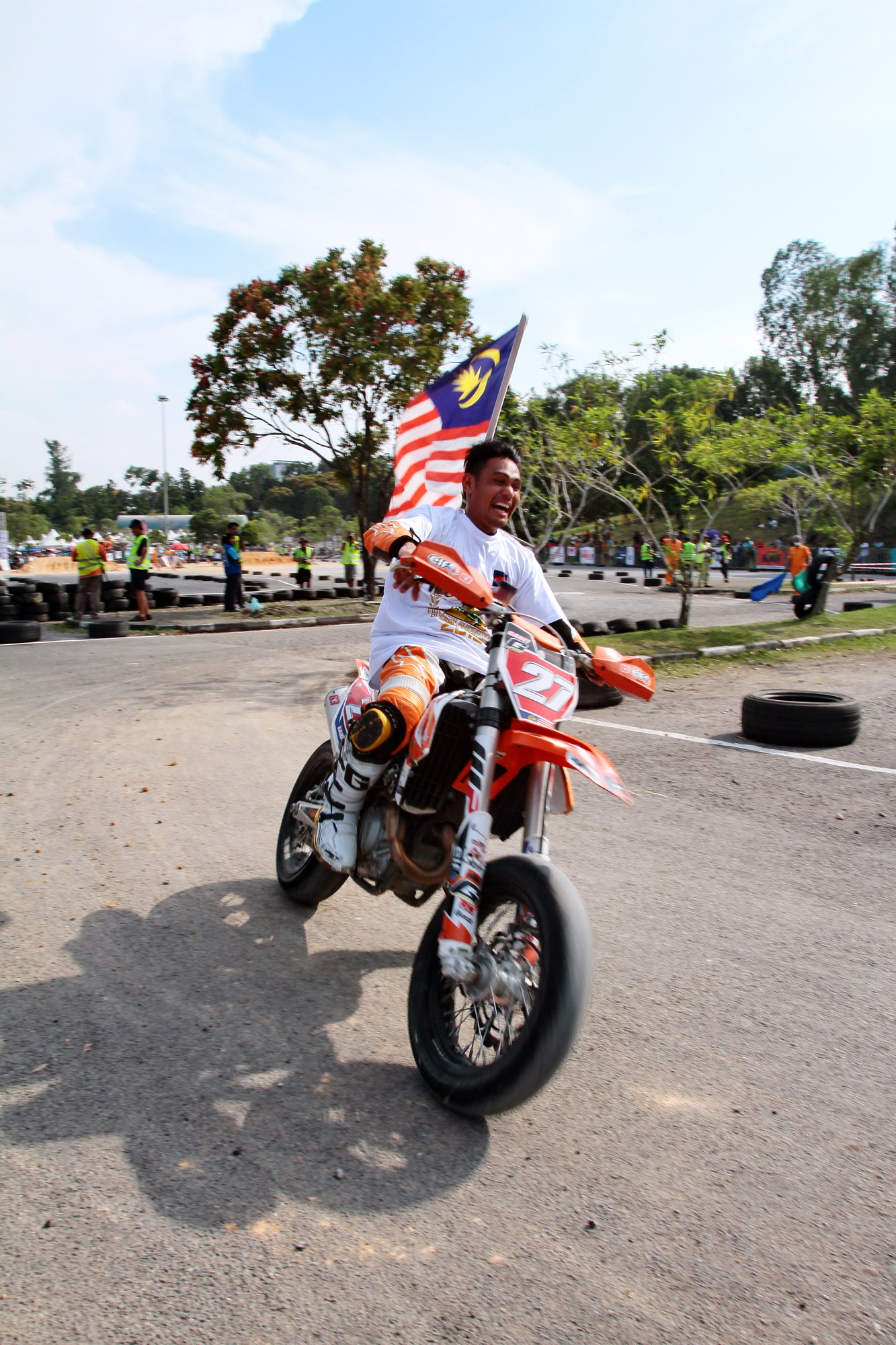 FIM 2016' 亞洲 Supermoto(公路越野)錦標(biāo)賽第四站,上周日在馬來(lái)西亞的沙亞蘭(SHAH ALAM)舉行。包括中國(guó)車(chē)手孫童在內(nèi)的近二十位車(chē)手參與了國(guó)際公開(kāi)組的兩節(jié)比賽。這是今年賽季的最后一場(chǎng)比賽,之前的三站分別是在澳大利亞(第一站)、印尼(第二站)、菲律賓(第三站)舉行。