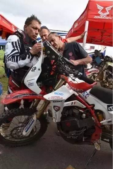去年宗申賽科龍車隊(duì)高調(diào)宣布參加2017年達(dá)喀爾拉力賽,讓國(guó)內(nèi)車友仿佛看到了中國(guó)品牌的崛起,尤其是在米蘭的賽事發(fā)布會(huì),吸引了世界眾多國(guó)際主流摩托車媒體的關(guān)注。宗申更是一口氣派出了5名車手參加達(dá)喀爾,要知道KTM、本田、雅馬哈等廠隊(duì)的車手人數(shù)也不過(guò)如此。車手名單中包括趙弘毅、任賢齊、張敏三名國(guó)內(nèi)知名車手,以及威力·熱巴赫和蒂埃里·貝瑟斯兩名經(jīng)驗(yàn)豐富的法國(guó)車手,其中蒂埃里·貝瑟斯還是2007年達(dá)喀爾賽的第8名,這次是他的第六次參加達(dá)喀爾,如今的宗申賽科龍車隊(duì)只剩下他一人孤軍奮戰(zhàn)……
