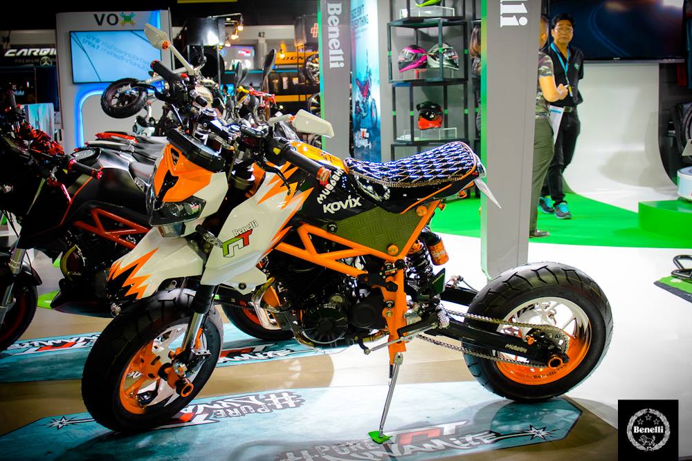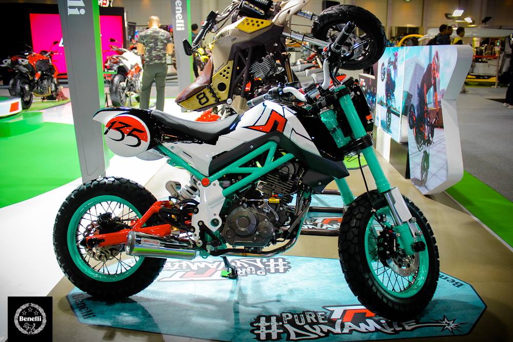 下圖:展覽會里的貝納利官方展臺,陳列著多部的改裝車。