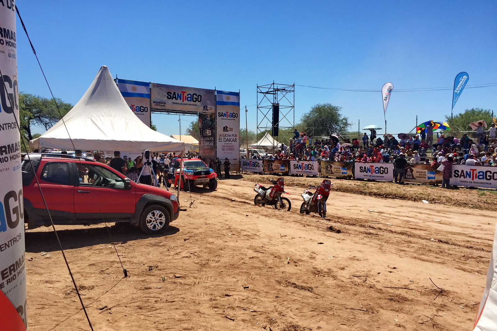 首先退賽的是張敏。他在第一賽段就已經(jīng)因?yàn)橘愜嚬收?、只能依靠?duì)友趙宏毅的拖帶之下勉強(qiáng)完賽。當(dāng)?shù)貢r(shí)間 3 號(hào)的第二賽段,張敏的賽車因?yàn)楣收隙鵁o(wú)法完成發(fā)車,被迫提前退出了比賽。“ 沒有賽道里騎過(guò)一公里沒扭過(guò)一把油就結(jié)束了我的第一次達(dá)喀。齊哥宏義和我都非常好,感謝所有關(guān)心支持的朋友。夢(mèng)想依然是夢(mèng)想、Dakar 我會(huì)回來(lái)的。 ” 張敏在他的朋友圈里這樣說(shuō)到。