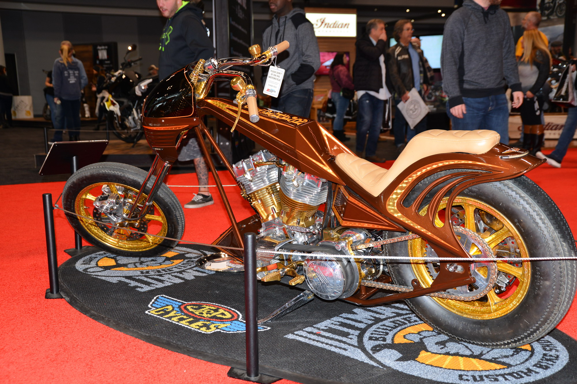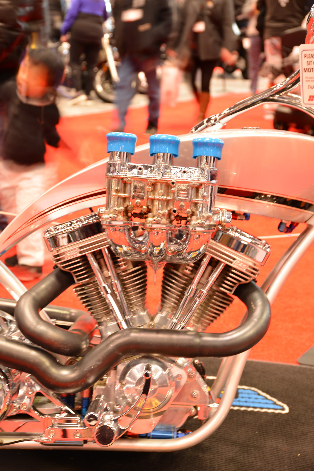 除了一些零件和用品的展示之外,這個(gè)聲稱自己是世界領(lǐng)先的摩托車后市場(chǎng)零件、用品、附件品牌,在現(xiàn)場(chǎng)也同時(shí)展示眾多他們的改裝/定制作品。當(dāng)中涵蓋了搭載 V2 發(fā)動(dòng)機(jī)的各種美式定制風(fēng)格巡航車、太子車,名為 The HULK、搭載渦輪增壓 V 型八汽缸發(fā)動(dòng)機(jī)、最大馬力輸出達(dá)到了 1,200 匹的后三輪太子,印第安人 Scout 改造而來(lái)的前三輪太子,渾身電鍍得閃閃發(fā)亮、加長(zhǎng)軸的直線加速?zèng)_刺機(jī)器 Suzuki GSX1300R,甚至還有以搭載臥式發(fā)動(dòng)機(jī)的 Honda 老車為基礎(chǔ)、改裝了流線型風(fēng)格車體的改裝車。
