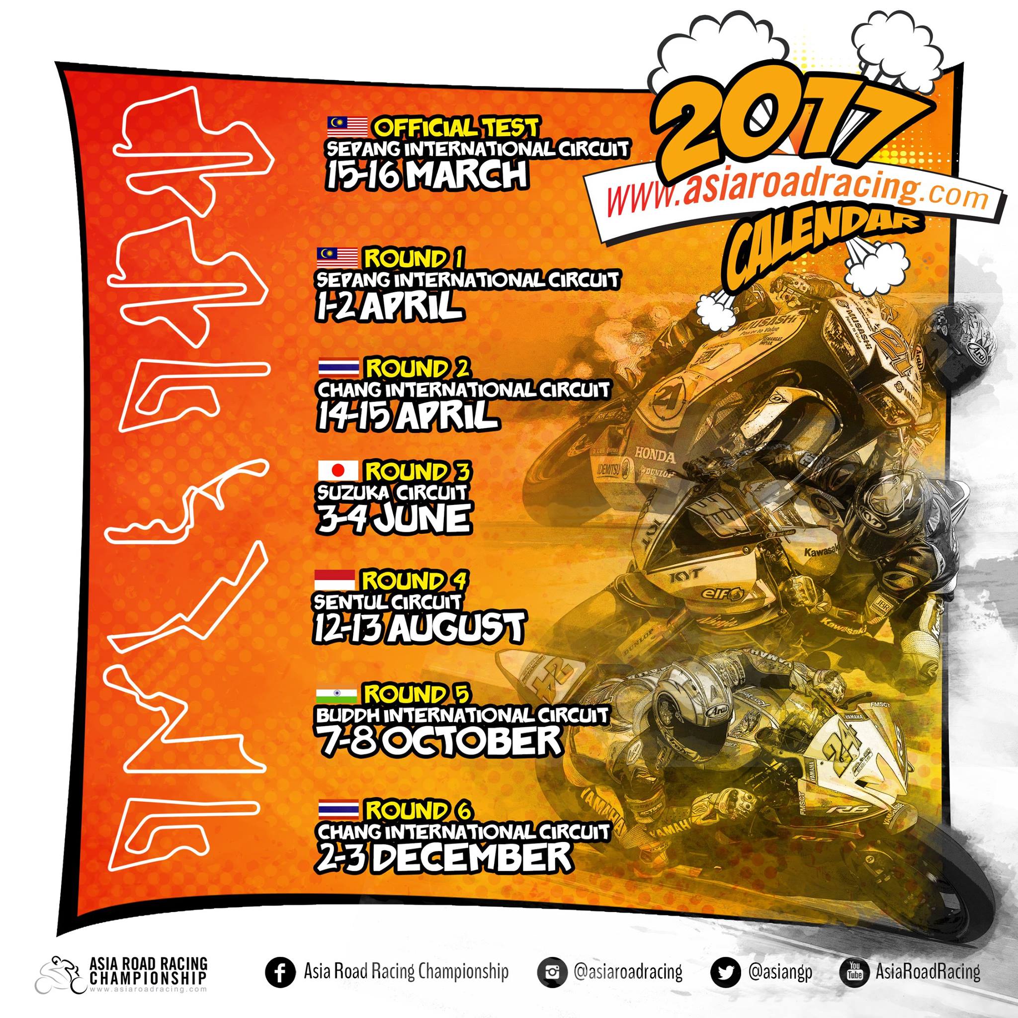 Two Wheels 上周發(fā)布了 FIM 亞洲公路錦標(biāo)賽(ARRC,Asia Road Racing Championship)的 2017' 賽季賽程表。