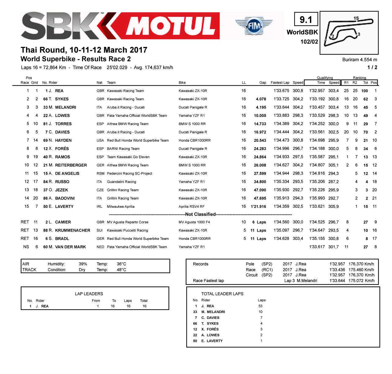 下圖:WSBK 級別第二節(jié)比賽成績