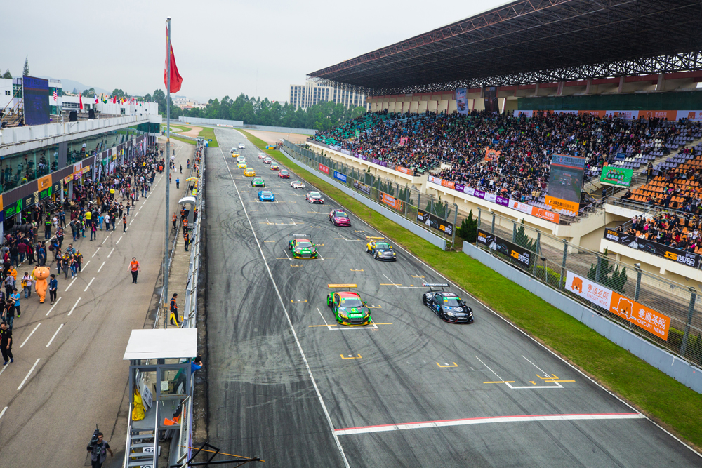 核心提示:18日下午1點54分,泛珠賽道英雄-壹的賽車駛上賽道,開始了這個組別第一場、也是最重要的一場長距離超級比賽。今天的陰雨天氣為珠
