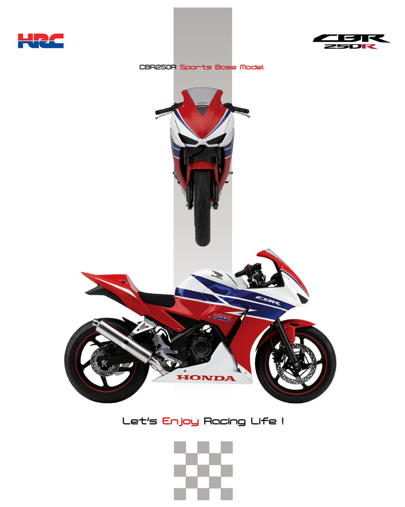 下圖:HRC 在多年前發(fā)布的、搭載單汽缸發(fā)動(dòng)機(jī)的 CBR 250R 比賽專用基礎(chǔ)車。