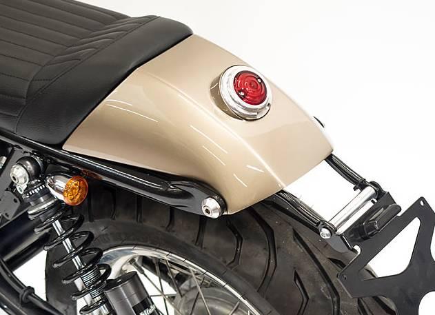 最后來到尾部,精簡的尾部造型是每部CAFE RACER都需要具備的。Ritmo Veloce的尾部采用了更小的駝峰,搭配精致的圓形剎車燈,以及輕量化的后牌照架,為整車增色不少。
