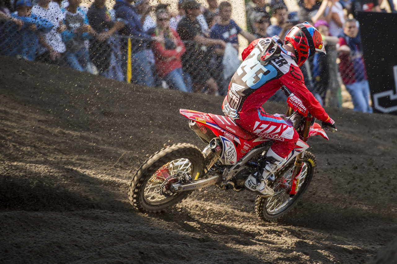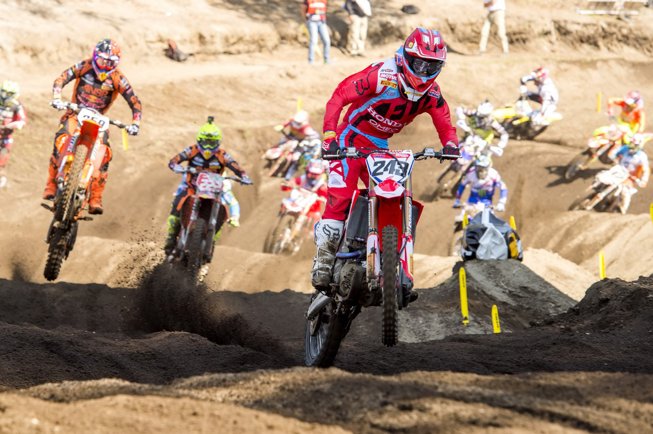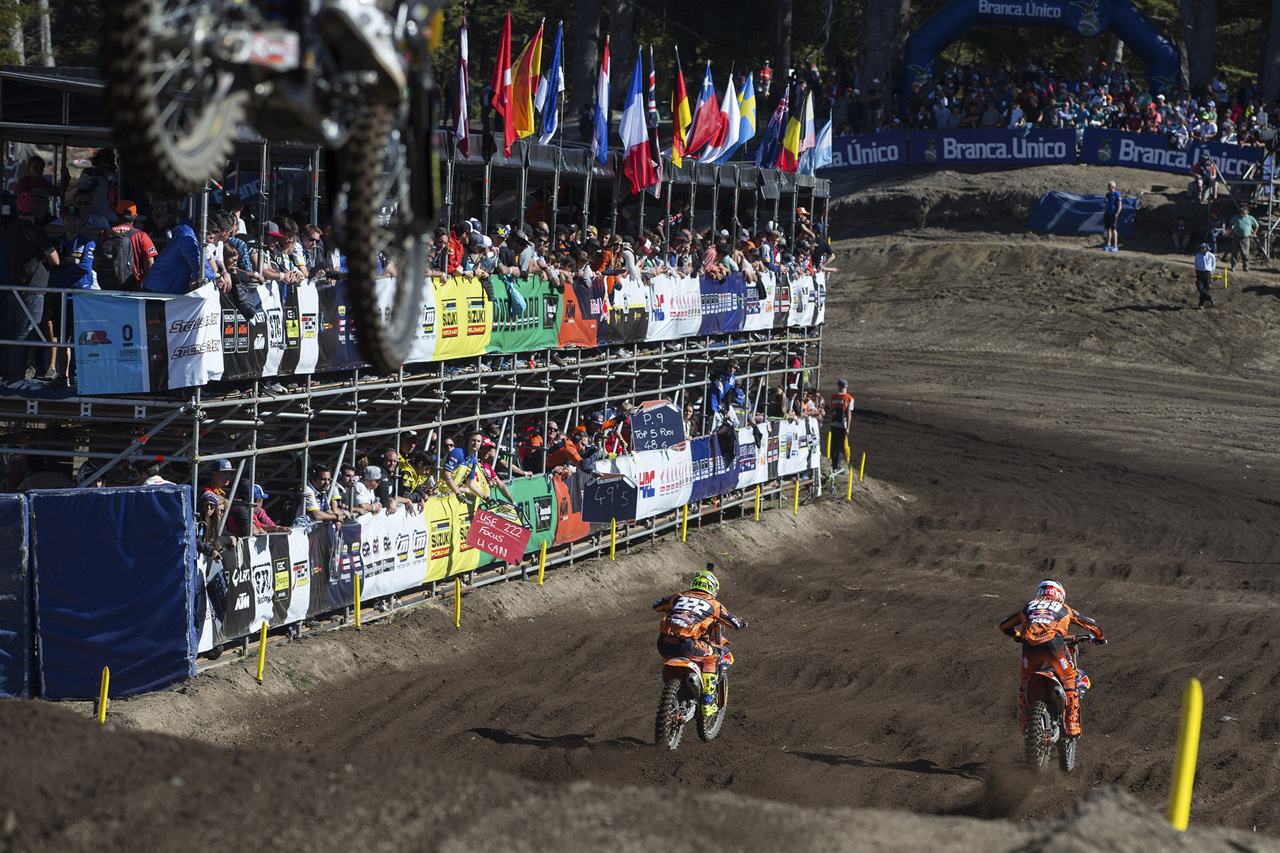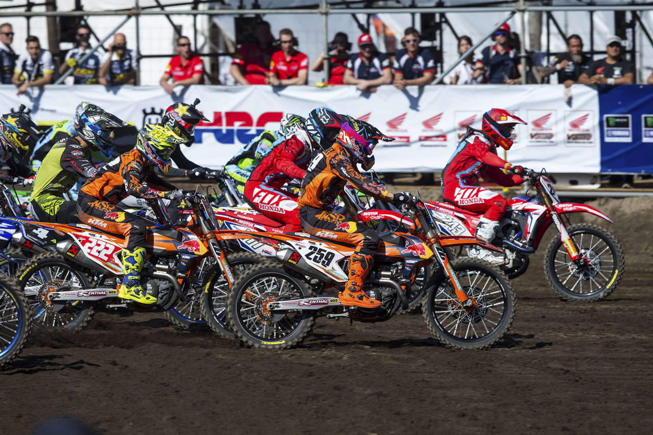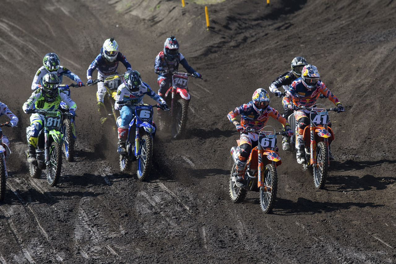去年的 MXGP 世界冠軍、來自斯洛文尼亞的蓋澤爾(Tim Gajser,Honda)表現(xiàn)出色,奪得了本站 MXGP 級別兩節(jié)比賽的冠軍。J.Van Horebeek(Yamaha)、C.Desalle(Kawasaki)分別獲得了第一節(jié)比賽的第二、第三;第二節(jié)比賽的頒獎臺另外兩個位置,則分別為 E.Bobryshev(Honda,第二)和 J.Van Horebeek(Yamaha,第三)所獲。三個分站的比賽之后,蓋澤爾以 106 分暫時排在了積分榜上的首位,KTM 的凱羅尼以 96 分排在了第二,Kawasaki 的 Desalle 以 91 分排在了第三。