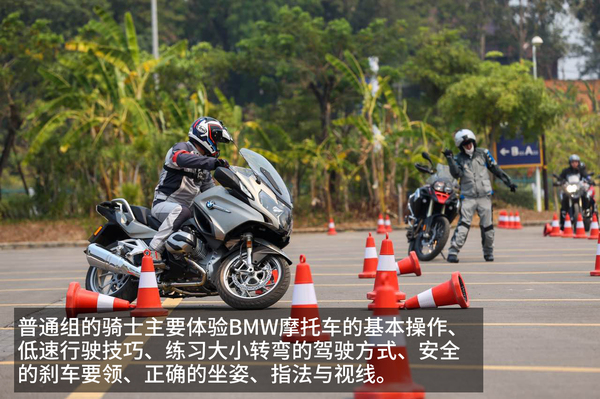 普通組的騎士主要體驗BMW摩托車的基本操作、低速行駛技巧、練習(xí)大小轉(zhuǎn)彎的駕駛方式、安全的剎車要領(lǐng)、正確的坐姿與指法。