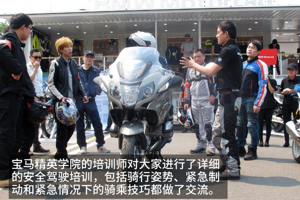 發(fā)布會結(jié)束后,來自寶馬精英學(xué)院的教練為在場的媒體進行了詳細的產(chǎn)品介紹及試駕部分的安全培訓(xùn)。小憩過后,參加試駕的各位媒體老師穿好騎行裝備來到試駕場地,寶馬精英學(xué)院的培訓(xùn)師對大家進行了詳細的安全駕駛培訓(xùn),包括騎行姿勢、緊急制動和緊急情況下的騎乘技巧都做了交流,畢竟大排摩托和大馬力后驅(qū)車一樣還是有一定危險性的。