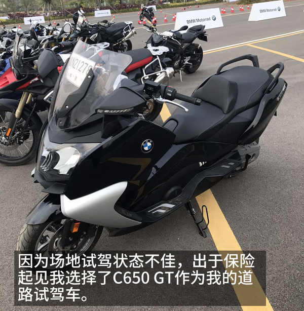 場地試駕結(jié)束后,就開始了最為激動人心的道路試駕。騎著大排量摩托在山路壓彎想必是不少騎士的夢想,如果是好幾十輛呢?呼嘯的多缸引擎刺激著每一位騎士的腎上腺素,而寶馬摩托車的優(yōu)秀操控性能也讓所有騎士大呼過癮。而因為場地試駕狀態(tài)不佳,我也保險起見選擇了豪華踏板C650 GT作為我道路試駕的試駕車,我的第一次跑山經(jīng)歷也正是獻給了它。下面我就談?wù)勎业脑囻{感受。