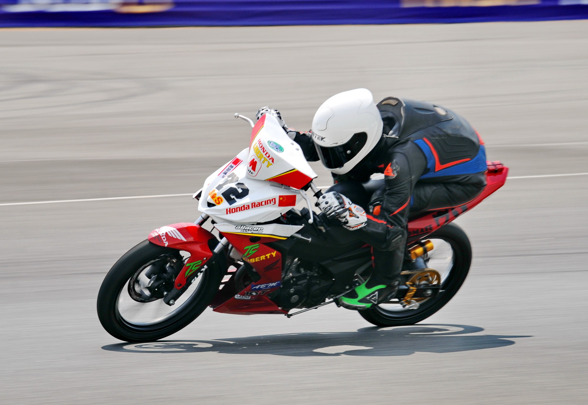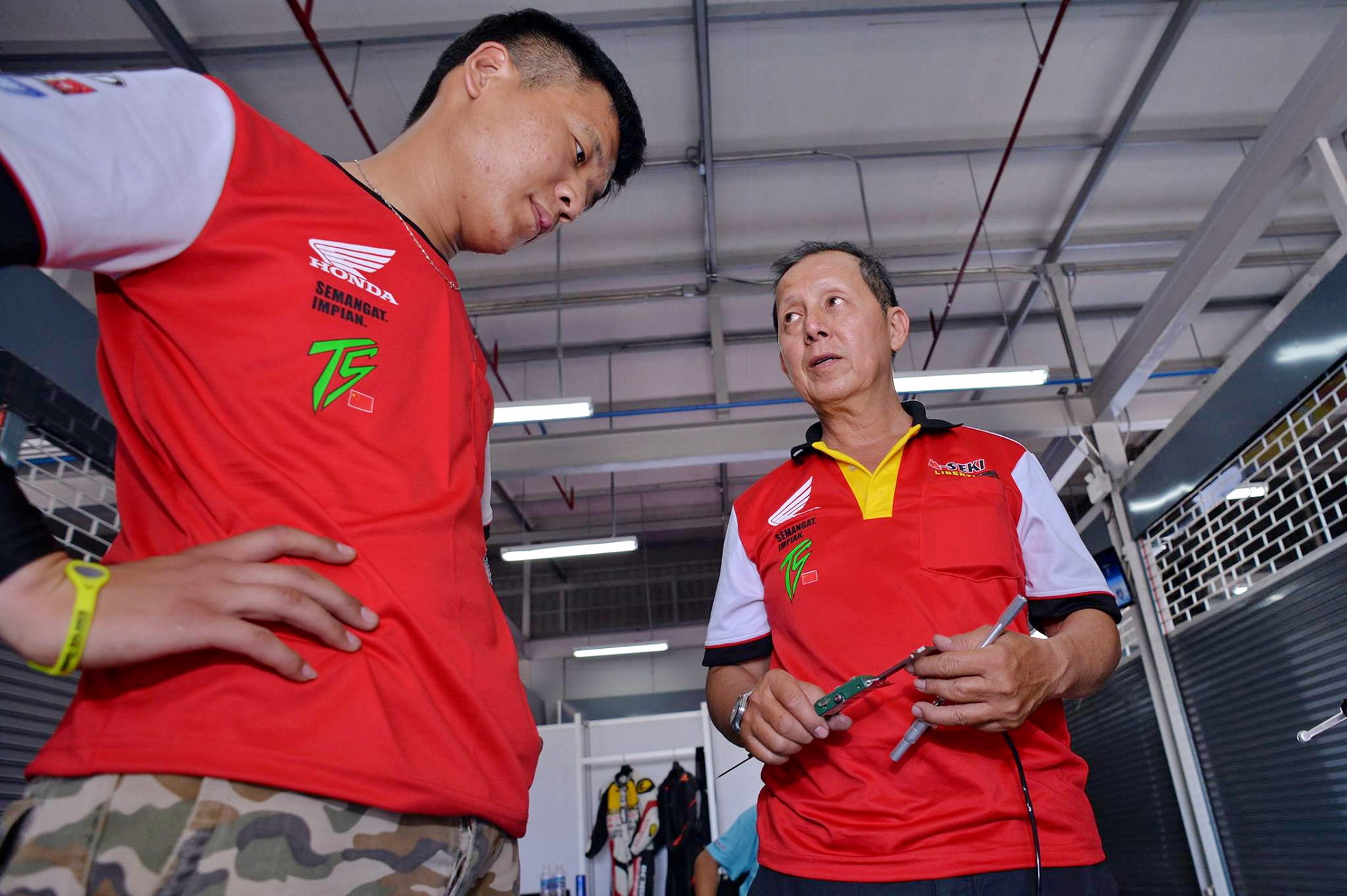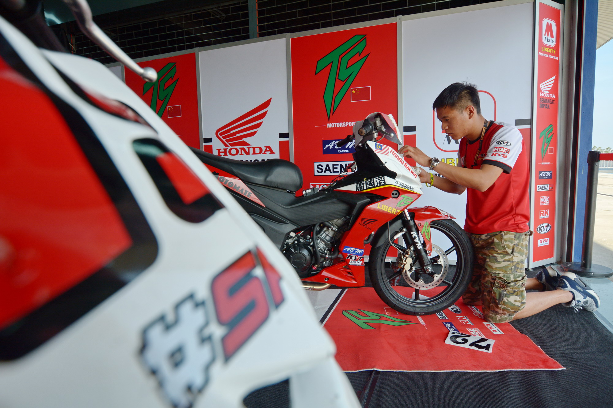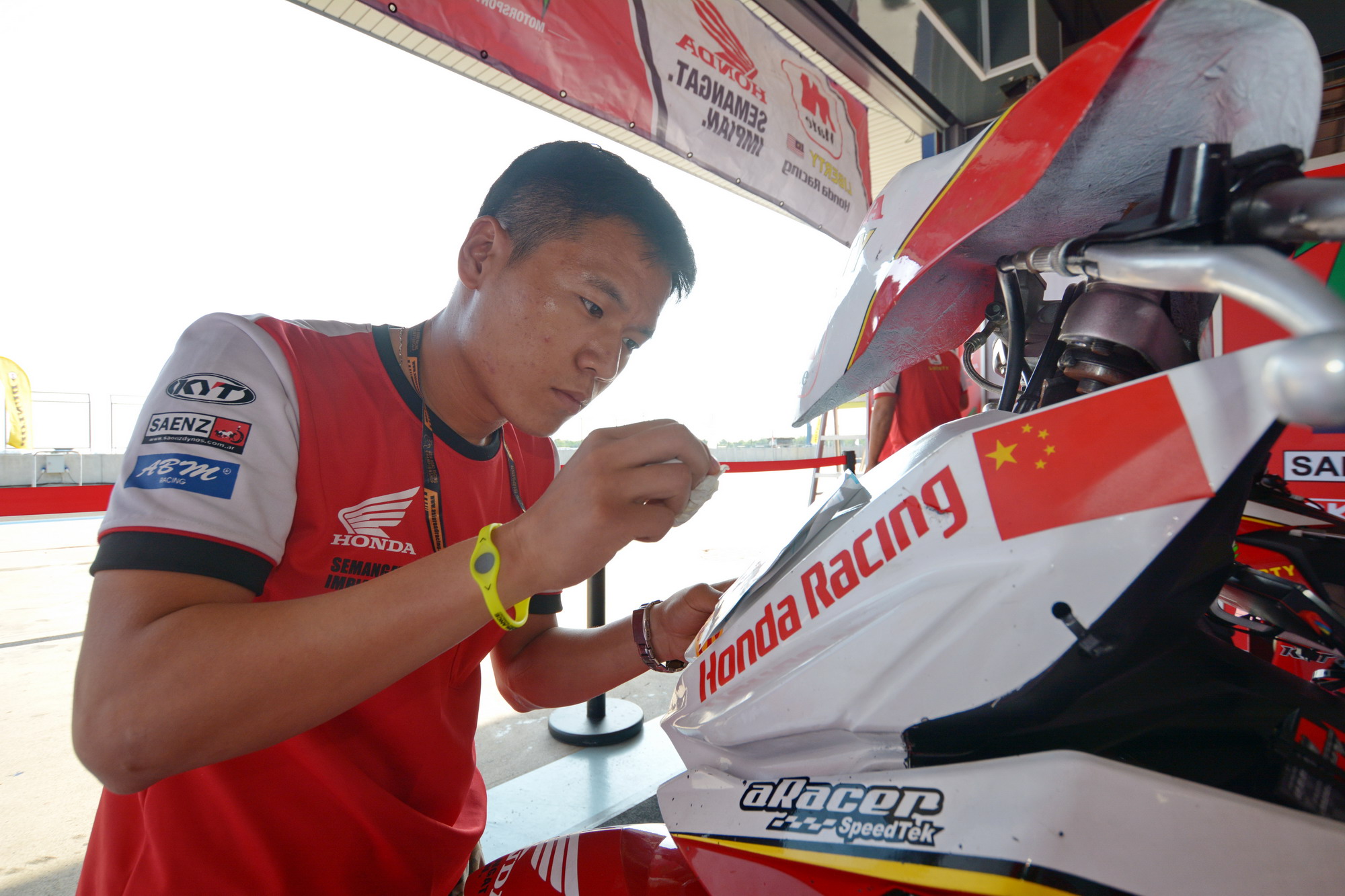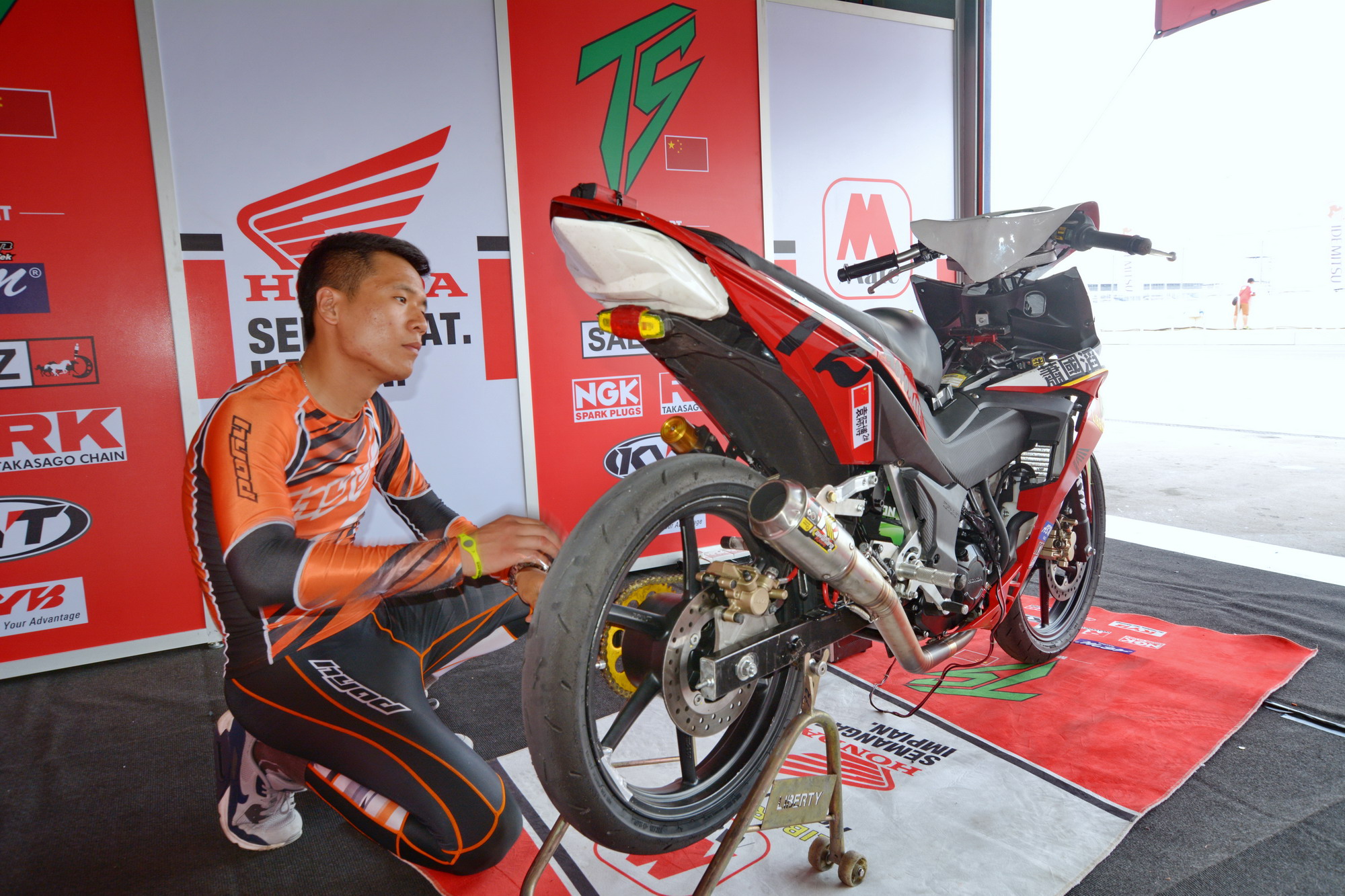 對于這次參賽的目標(biāo),他表示現(xiàn)在最主要的其實(shí)還是對車的熟悉,還有整個團(tuán)隊(duì)的配合。至于名次,現(xiàn)階段還沒有想太多,畢竟第一次,過往他對于開彎梁的賽車接觸很少,需要更多的時間和練習(xí)來適應(yīng)它。彎梁賽車和他自己平時在國內(nèi)開的 150、250、600 騎式車有很大的區(qū)別,沒有油箱,前避震器只有一個方向柱固定(類似于踏板車),輪胎只有前90、后100,所以車架的穩(wěn)定性方面差很多;另外,平時習(xí)慣了前置油箱的賽車,在進(jìn)彎的時候、彎中的姿勢兩者都有所不同;輪胎相對比較窄,對輪胎的適應(yīng)也是一方面。