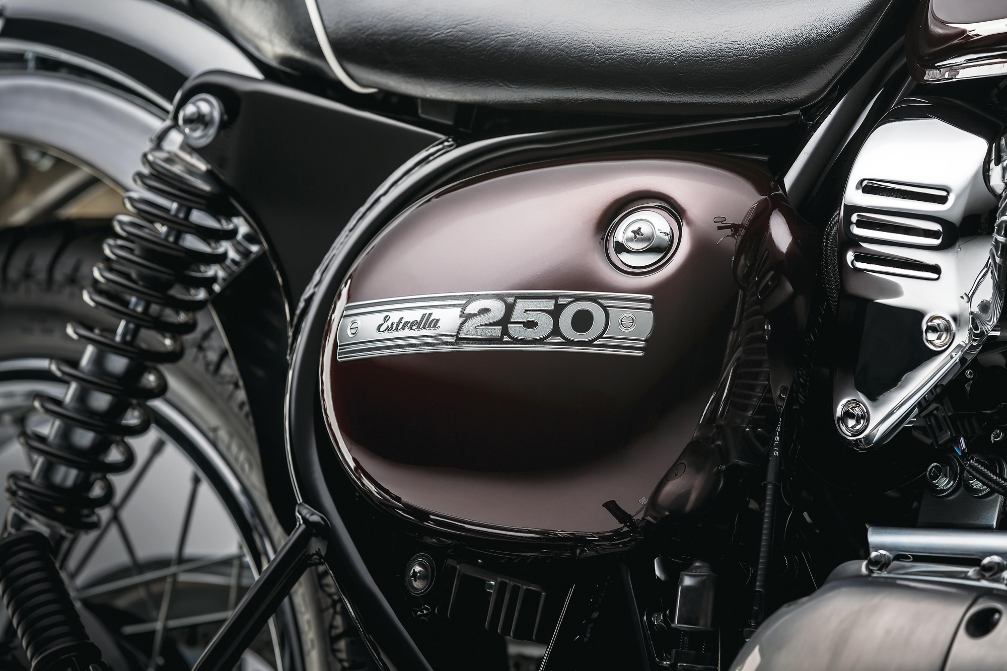 Estrella 搭載一副風(fēng)冷四沖程單汽缸、SOHC 兩汽閥的發(fā)動(dòng)機(jī),排汽量 249 cc,最大動(dòng)力輸出 13 kw(18 匹)。多年來保持不變的復(fù)古造型,鋼線的輪框,獨(dú)特的排汽管外觀,是 Estrella 的主要特點(diǎn)。