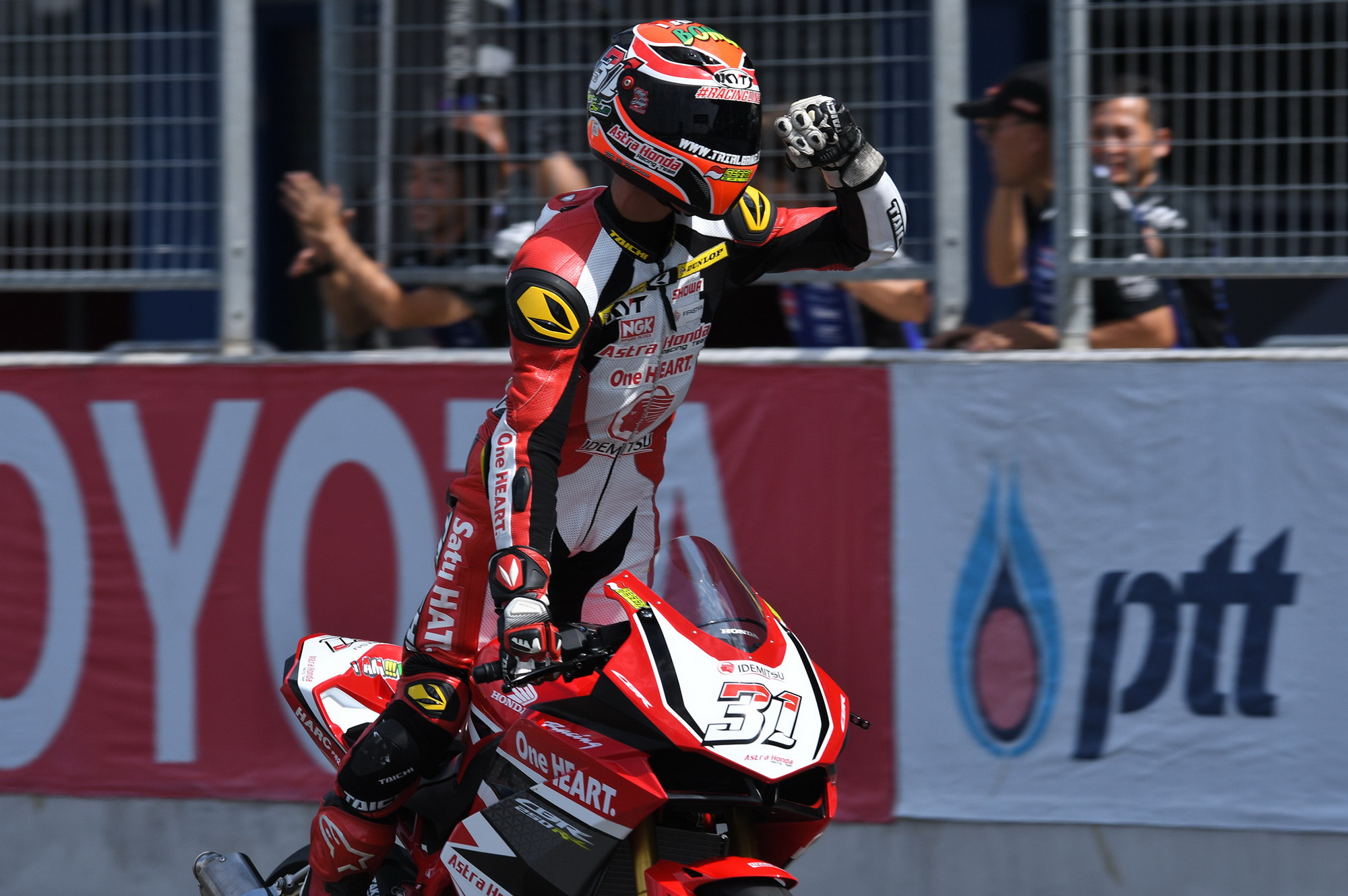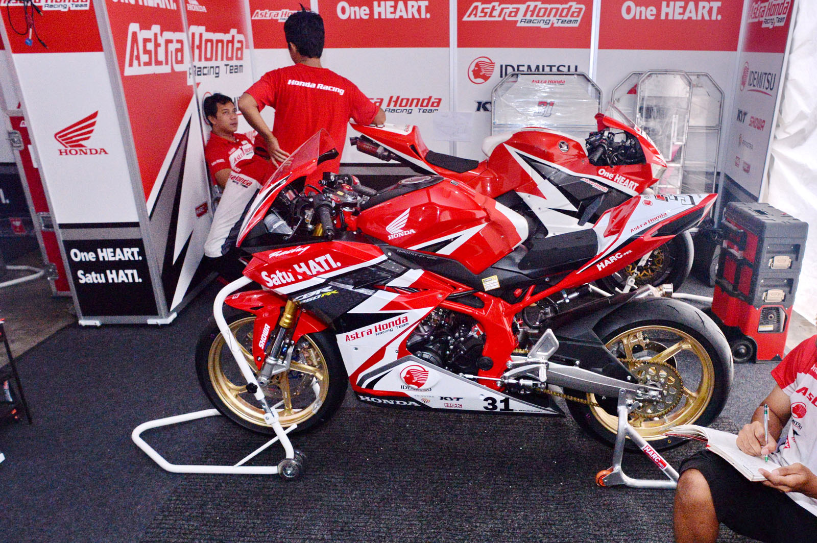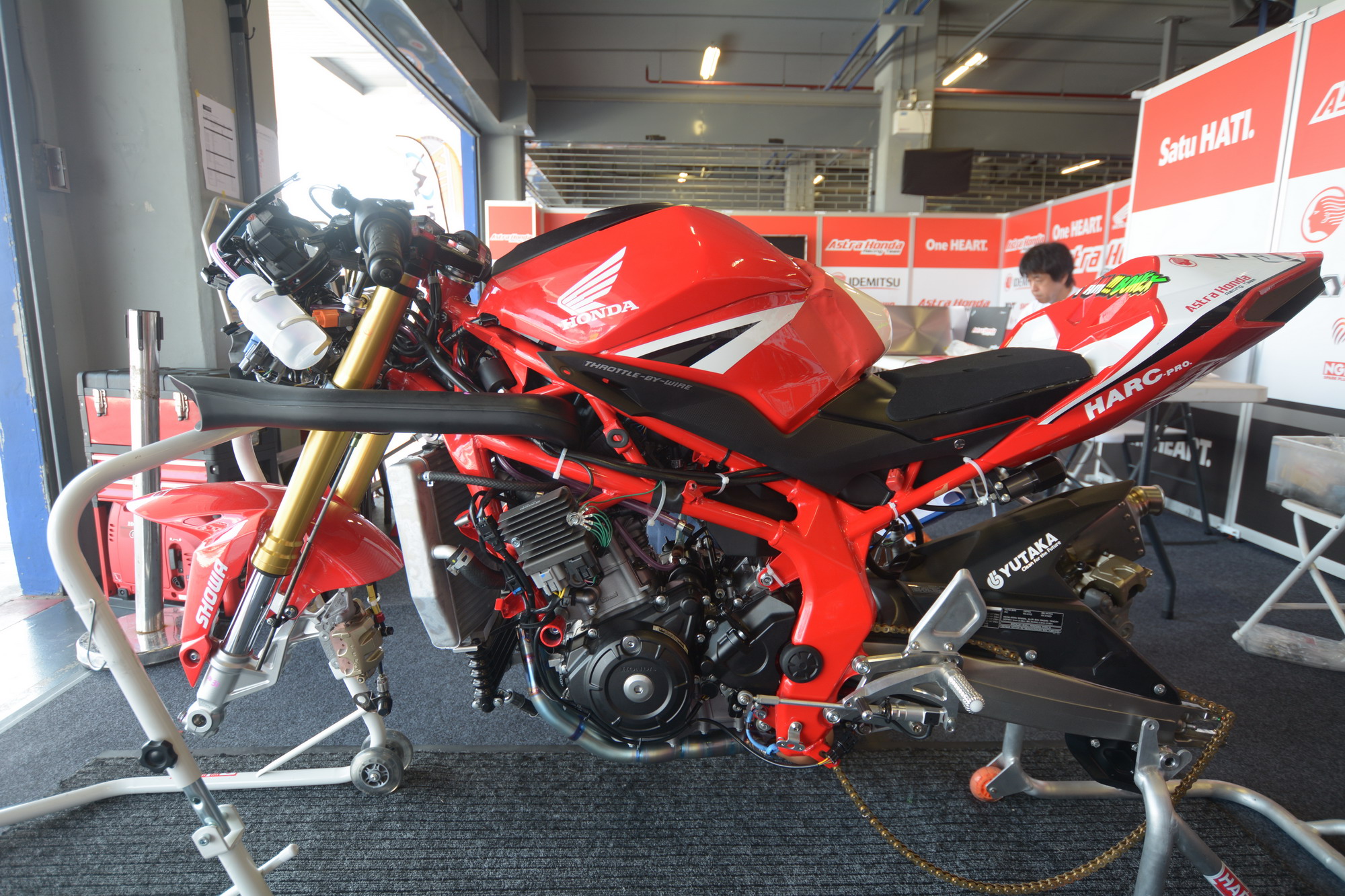 印尼 Honda 去年才正式亮相的全新 CBR250RR,今年也第一時(shí)間投入到 ARRC 的比賽中,而且是以 Astra Honda 工廠車隊(duì)的名義參賽。在已經(jīng)結(jié)束了的今年前兩站比賽(馬來西亞柔佛,泰國 Chang)中,這支工廠車隊(duì)的 31 號(hào)車、由印尼車手 Gerry Salim 駕駛的 CBR250RR 賽車,已經(jīng)在四節(jié)的比賽中贏得了三節(jié)的冠軍,在車手積分榜上處于領(lǐng)先地位。