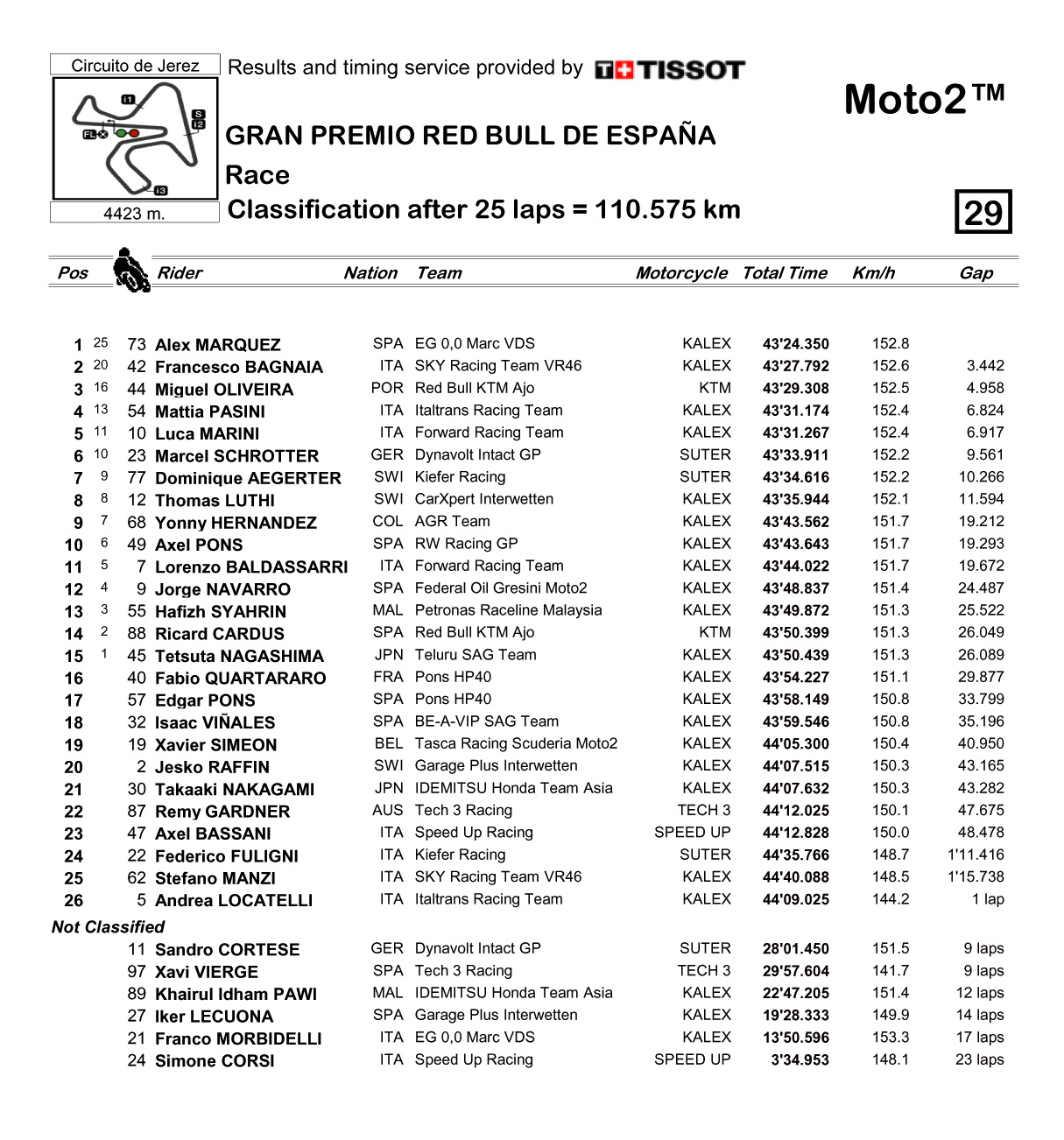 下圖:Moto2 級(jí)別成績