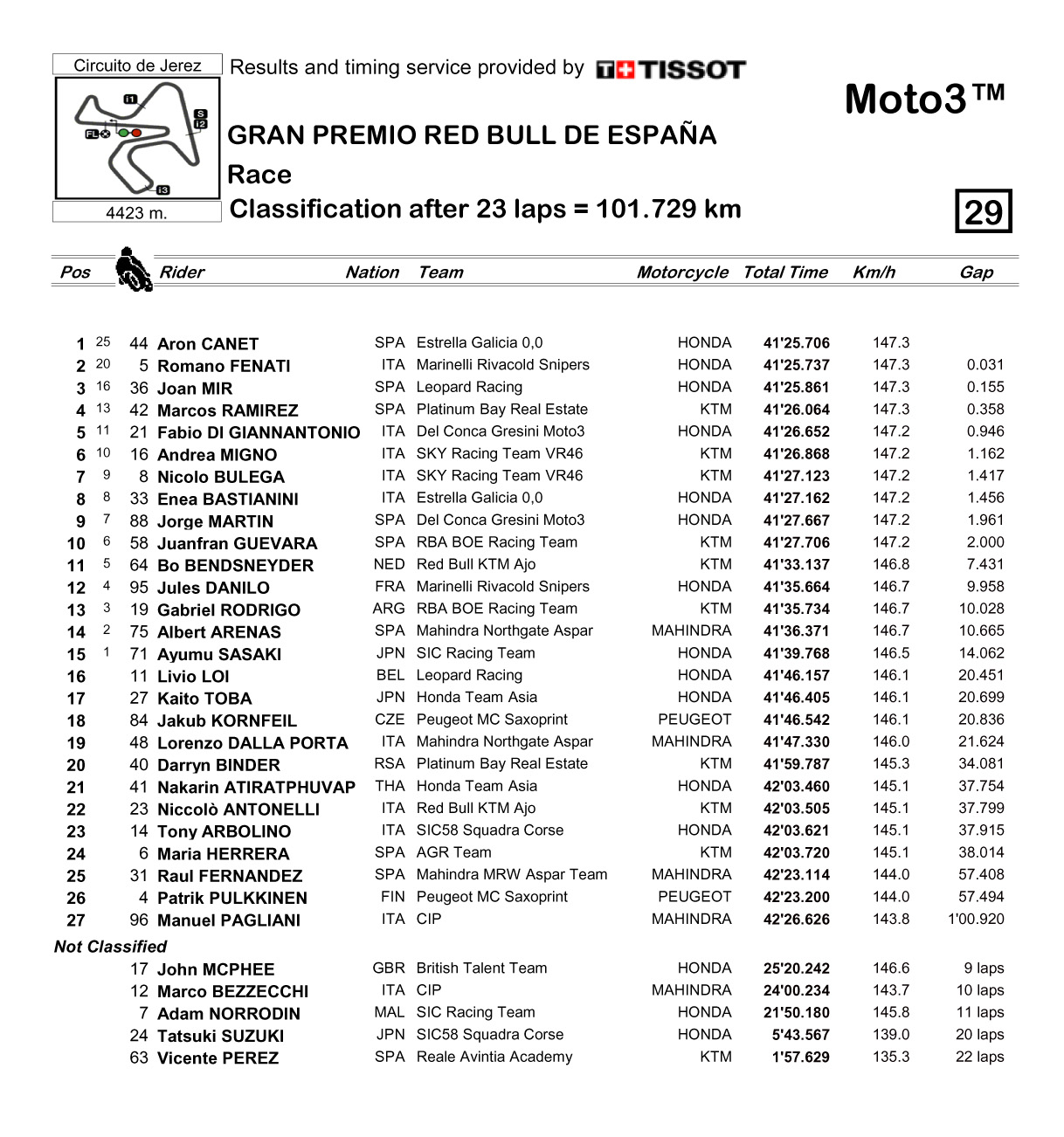 下圖:Moto3 級(jí)別成績