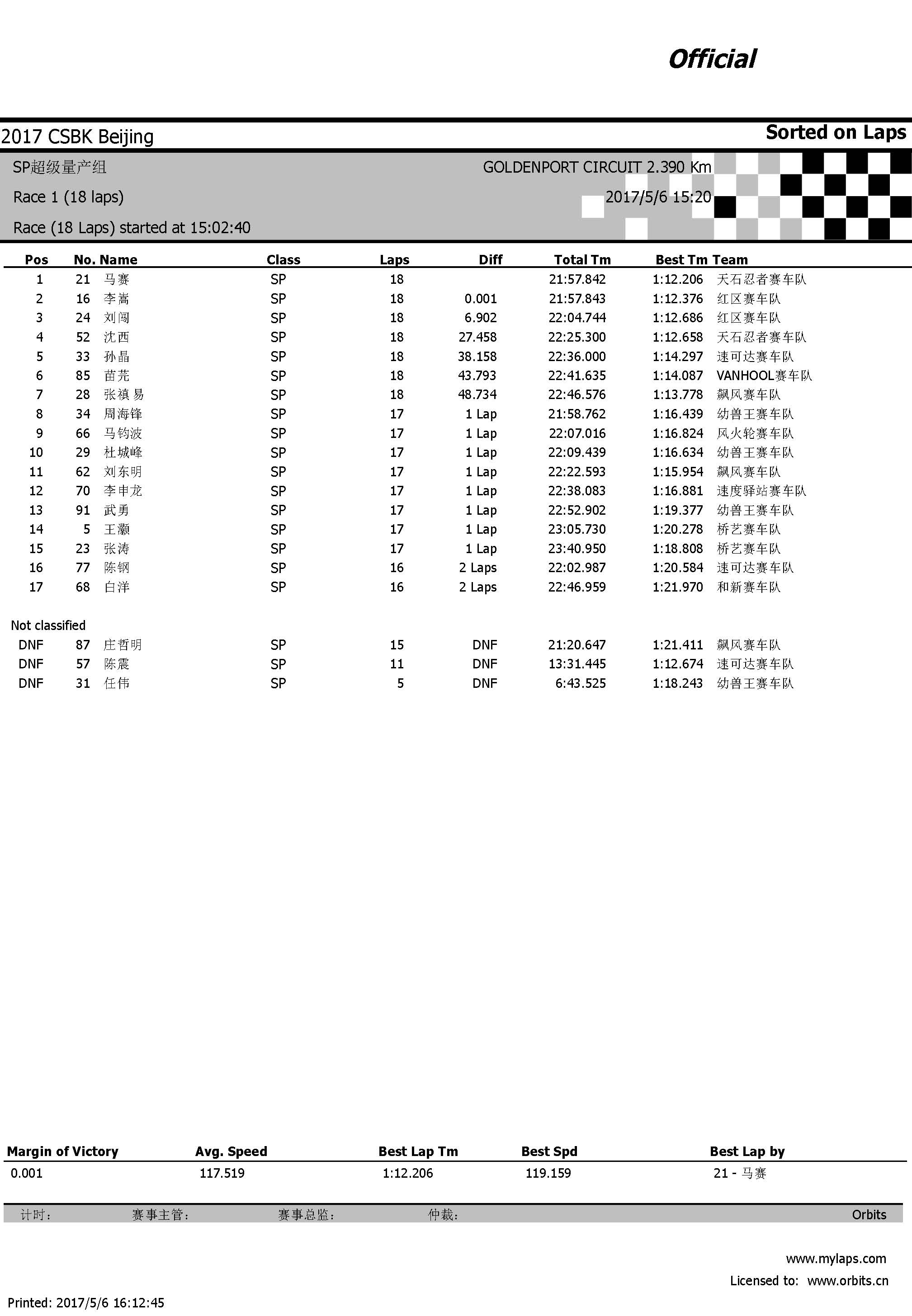 2017北京站SP超級(jí)量產(chǎn)組第一回合決賽 成績