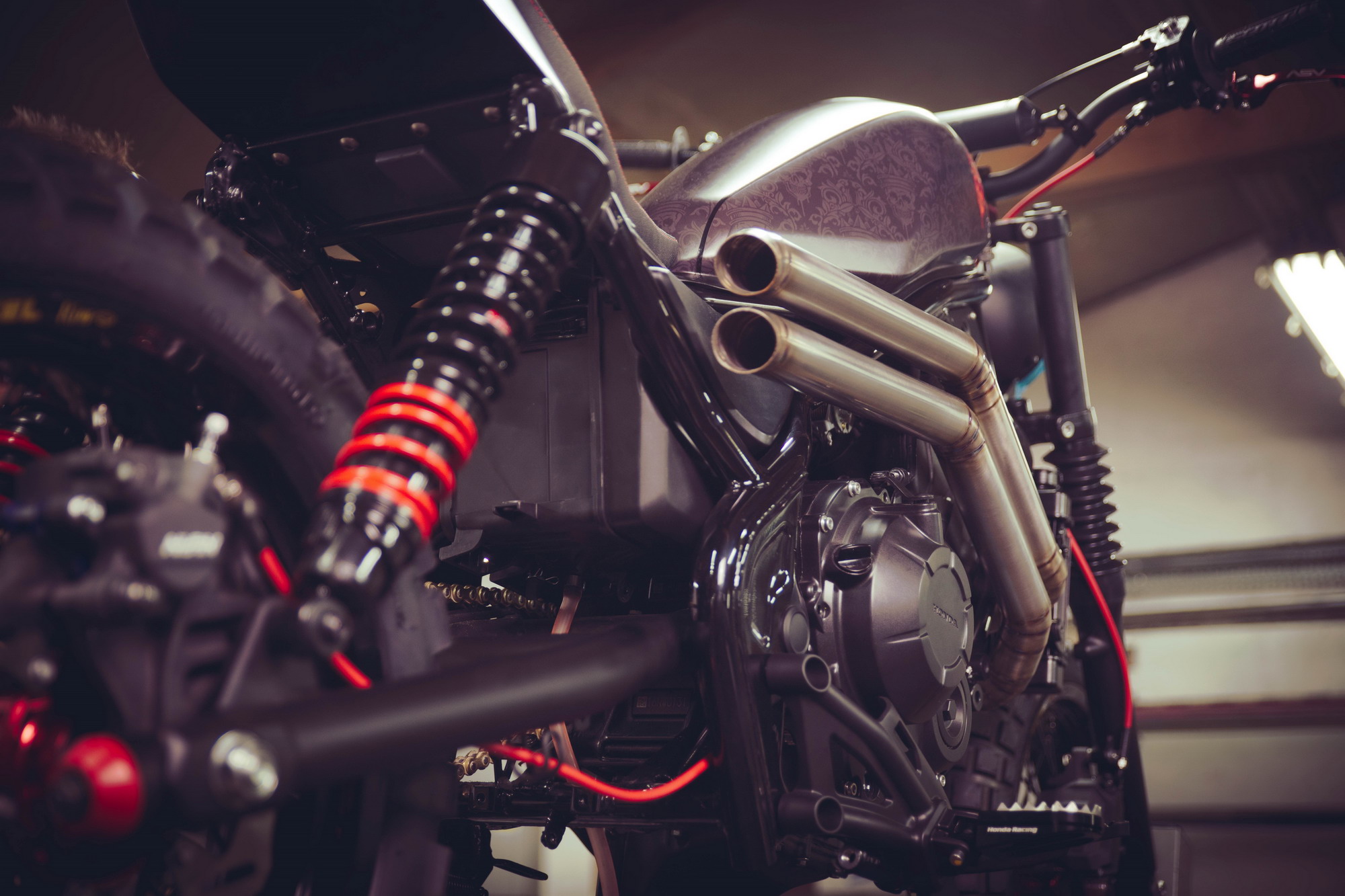 而這臺(tái) “ 叛逆 ” 改裝車(chē)采用了一個(gè)更加極端的外觀造型,配備了雙用途(公路/野外)的前后輪胎,油箱、車(chē)尾也不忘展示一下紋身的藝術(shù)。Honda 的 “ 叛逆 ” 大項(xiàng)目負(fù)責(zé)人 Keita Mikura 認(rèn)為,這部改裝車(chē)所展現(xiàn)的是一個(gè)以 BMX(山地自行車(chē))和滑板文化為主的、超現(xiàn)代化的城市版本。