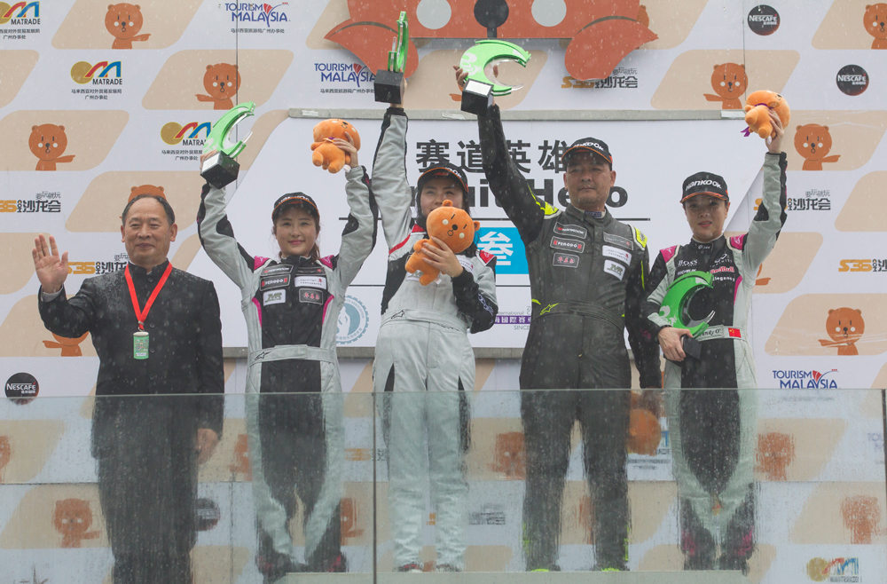 賽道沒有捷徑,其他車手走過的彎路她依然繞不開,但一次次的累積帶來一次次的進(jìn)步,如今她已經(jīng)是領(lǐng)獎臺的常客。2017泛珠春季賽,賽道英雄-叁的比賽中首次設(shè)置了兩位車手交換駕駛同一臺賽車完賽,和另一名女性車手搭配的趙伊娜又在一眾男選手中脫穎而出站上領(lǐng)獎臺,同是雨戰(zhàn),在其他車手沖出賽道的時(shí)候她已經(jīng)懂得穩(wěn)扎穩(wěn)打的策略,不失誤便是成功。
