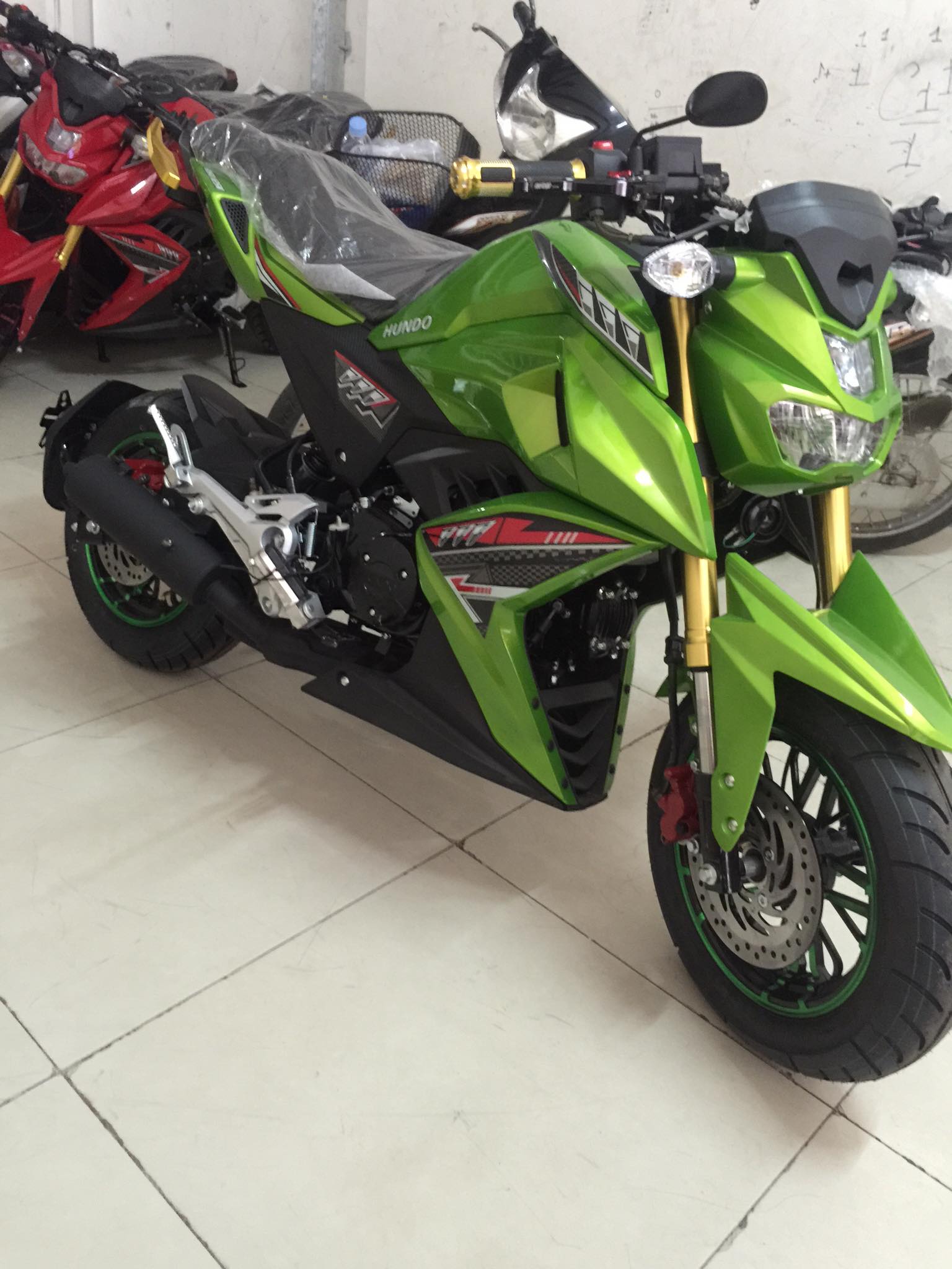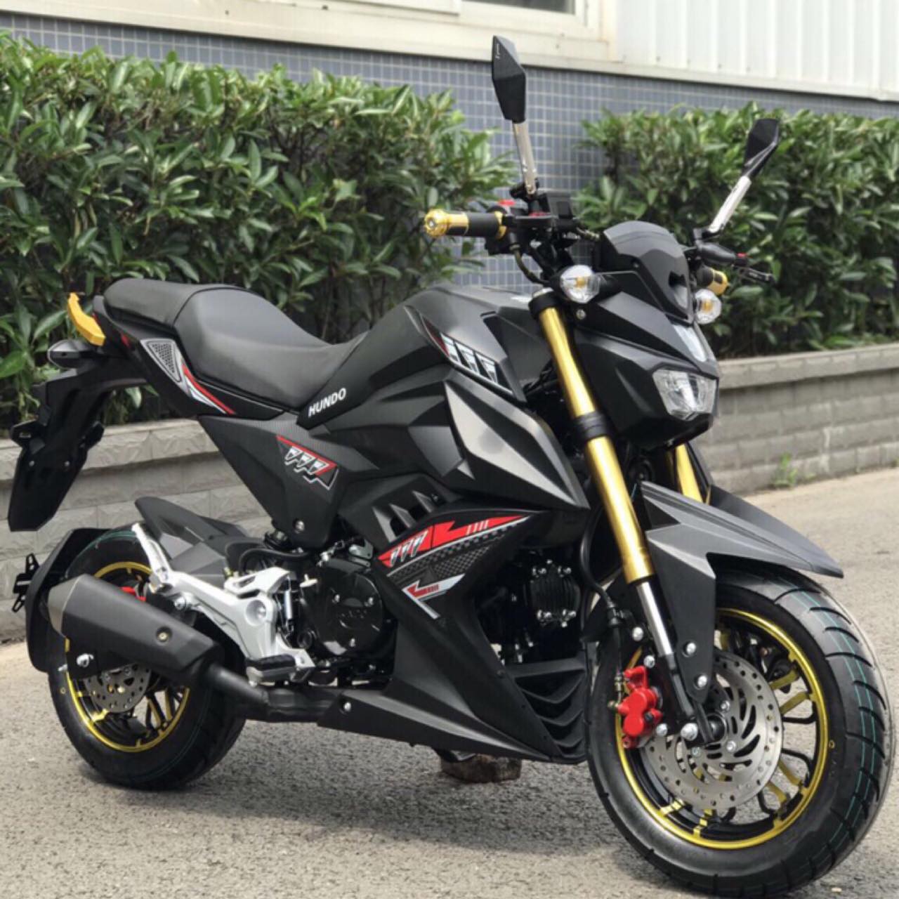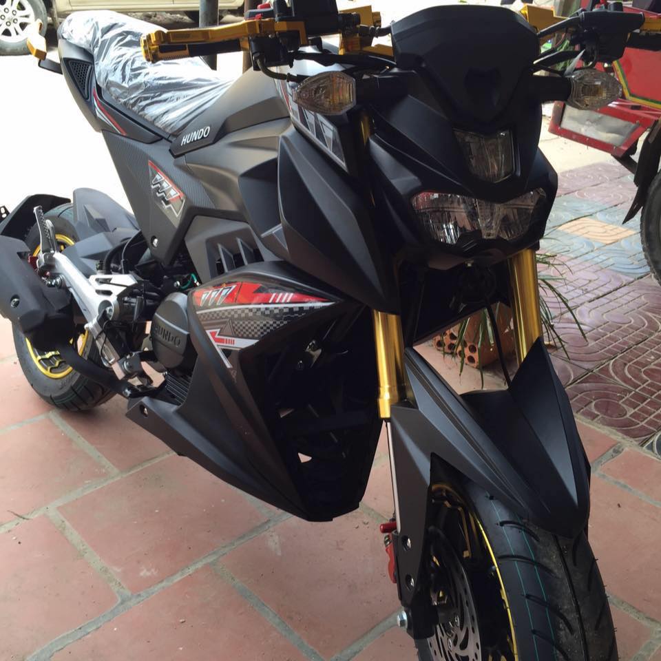 繼之前的仿 MSX、迷你版的 Monster “ 怪獸 ” 之后,當?shù)刈罱兔俺隽艘豢钌袼?Yamaha 在當?shù)厥袌錾a(chǎn)的 M-Slaz 150 的迷你車,牌子叫做 Hundo。表面上看,其實這款迷你車跟之前的仿 MSX 款相差不大,只是修改了諸如車頭整流罩、大燈、兩側(cè)外殼造型等的車頭部分,同時把很多改裝級的組件(前、后車輪,CNC 的合金后扶手、牛角)當成了標準配置放在車上,以迎合當?shù)厥袌龅南M潮流。