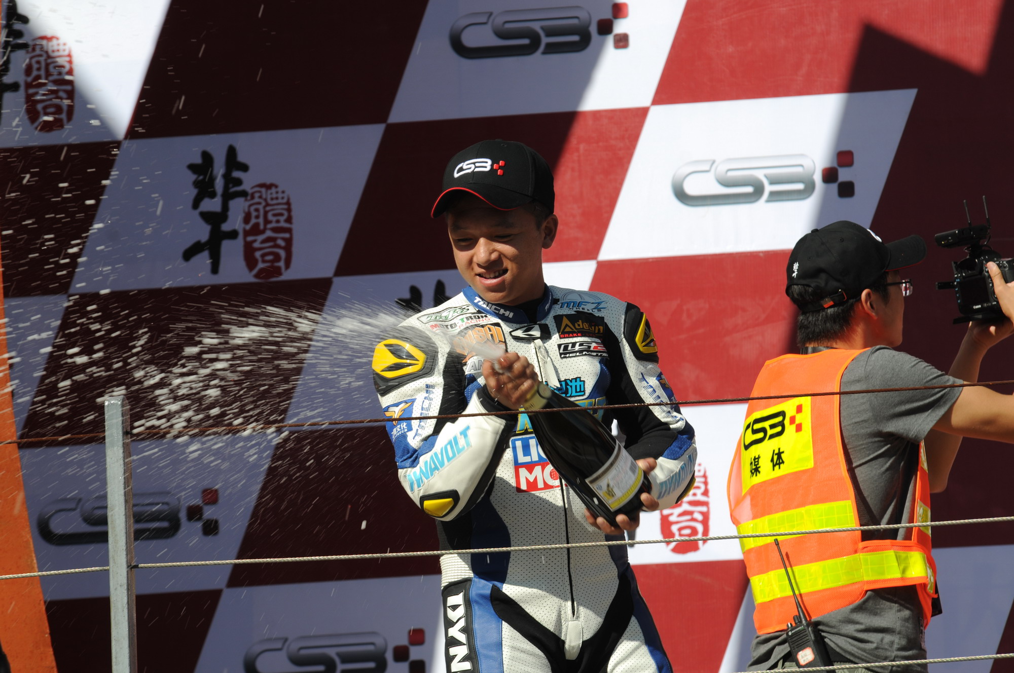改裝 250 cc 公開組第一節(jié)的比賽,全場(chǎng)焦點(diǎn)是陳遠(yuǎn)航、蒙醒斌、周盛俊杰的三人之爭(zhēng),七圈的比賽三人是從頭到尾一直纏斗在一起。最終周盛俊杰率先沖線、奪得了第一節(jié)比賽的冠軍,其隊(duì)友陳遠(yuǎn)航獲得了第二,蒙醒斌獲得了第三,沖線時(shí)三人的時(shí)間相差只有 0.263 秒。而蒙醒斌則跑出了這節(jié)比賽的全場(chǎng)最快圈速:2 分 02.754 秒。
