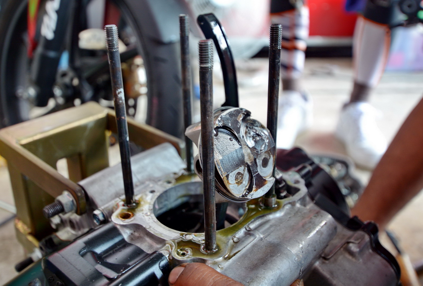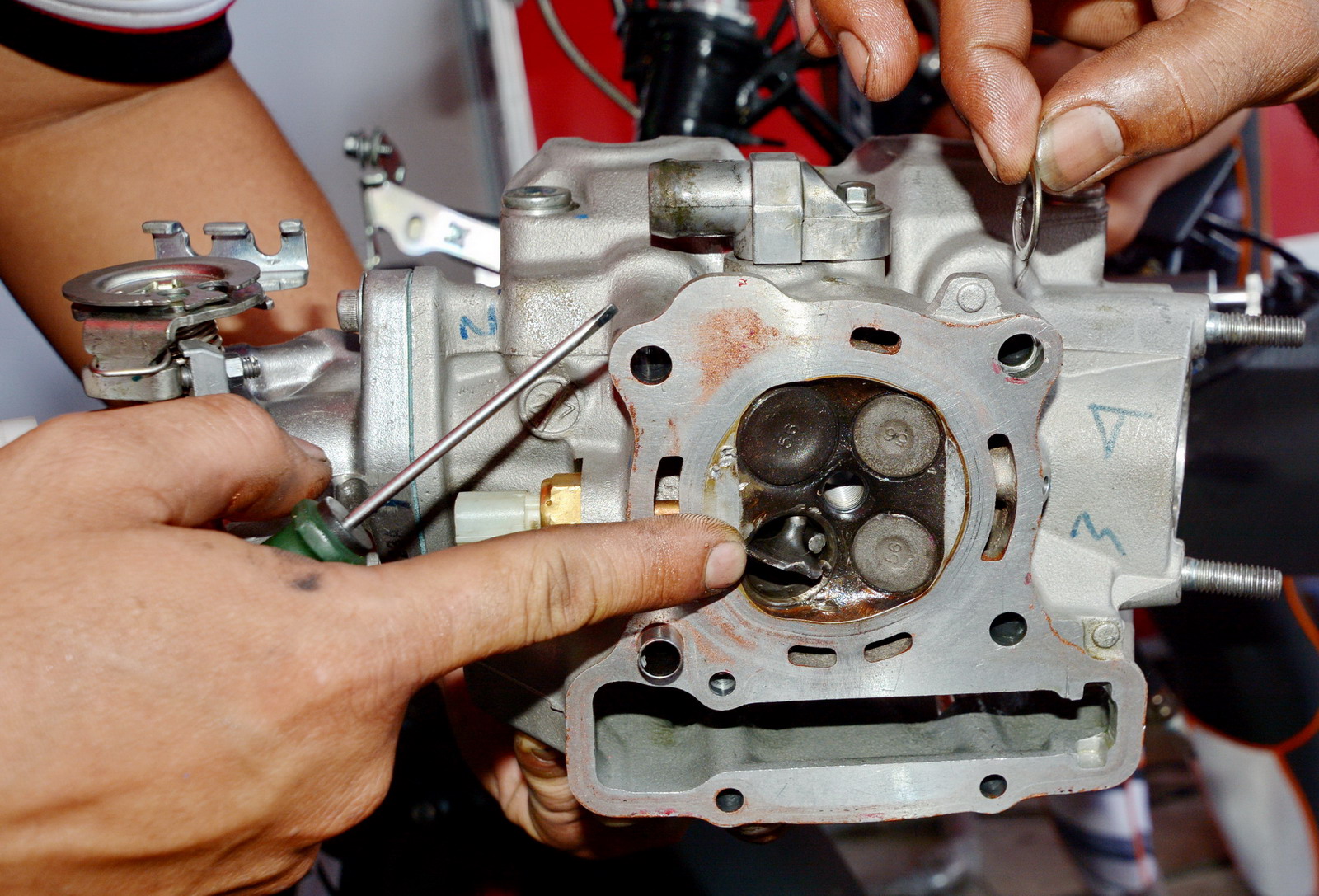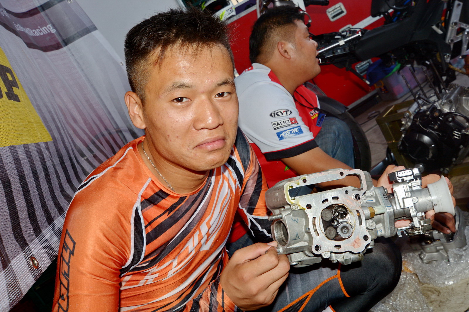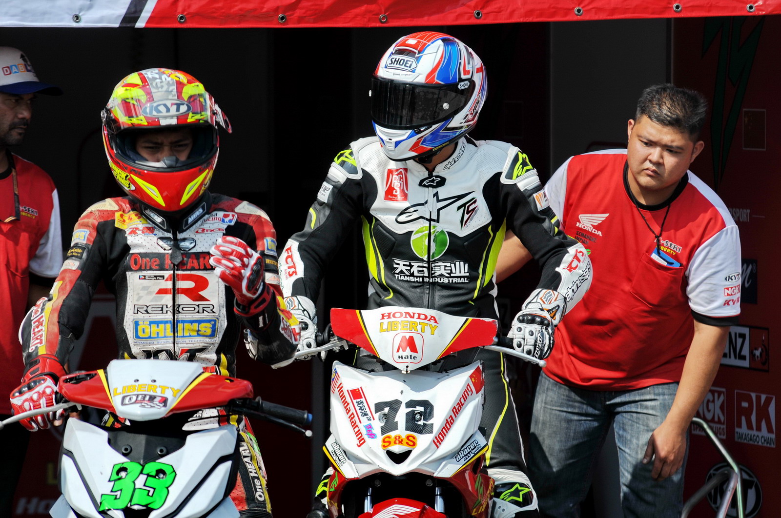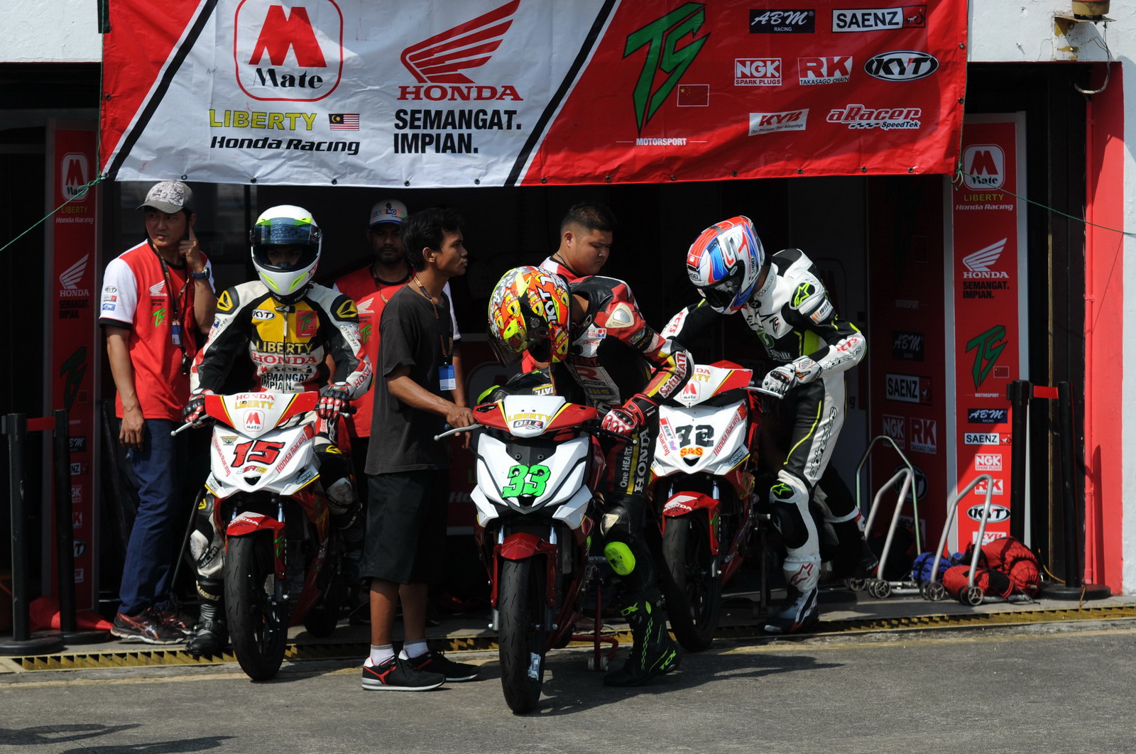 參加 UB150 級(jí)別比賽的中國車手袁際博,早上自由練習(xí)的時(shí)候僅僅跑出了2分00.823秒的圈速,距離頭車的1分49.789秒最快圈速、有著不少的差距。袁際博在回到了維修站的時(shí)候表示,早上首次騎新賽車進(jìn)行了大約30分鐘練習(xí)。在賽道練習(xí)過程中發(fā)現(xiàn)多個(gè)問題,離合線行程沒有調(diào)好,后減震有不正常的反應(yīng)。還有前減震的改裝CNC鋁合金上下連扳似乎存在匹配的問題,有導(dǎo)致車頭轉(zhuǎn)向穩(wěn)定性下降的情況。經(jīng)過上午的練習(xí)回來的回饋,車隊(duì)換回有平衡作用的原裝上下連扳,后減震也進(jìn)行適當(dāng)?shù)恼{(diào)整。一切準(zhǔn)備就緒后,全體在等待下午的排位賽。