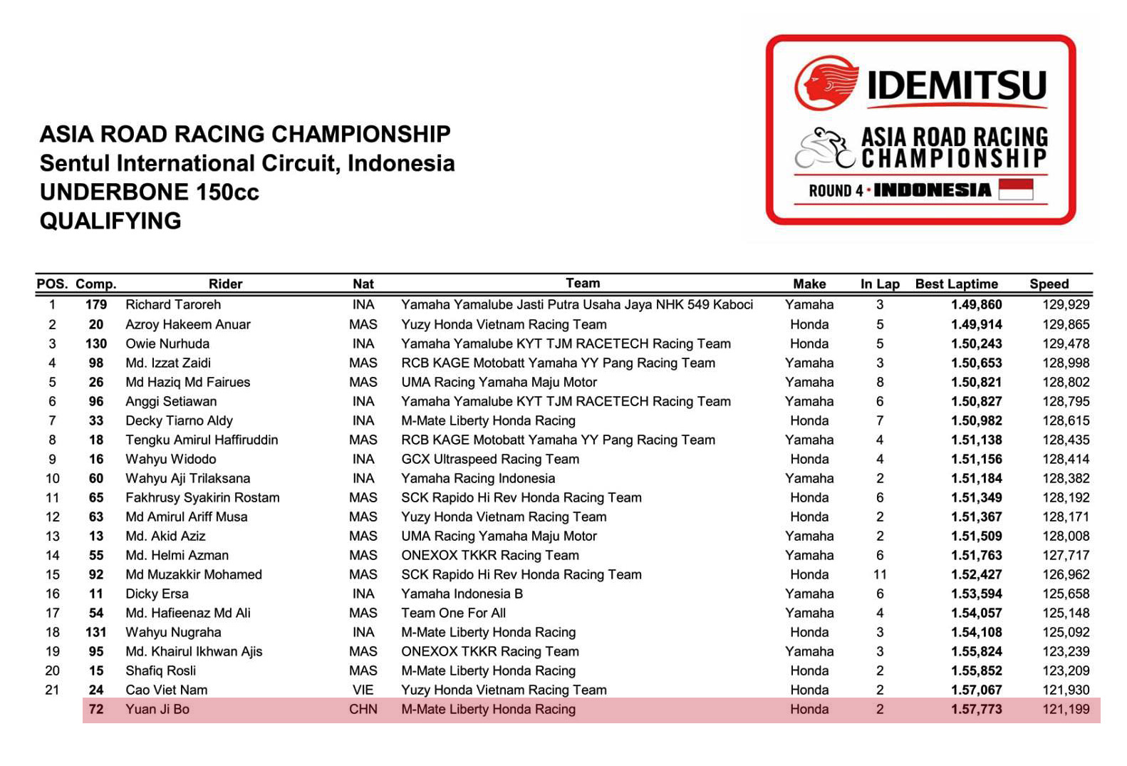 FIM 2017’ ARRC(亞洲公路錦標(biāo)賽)第三站、印尼,今天(八月11號(hào))進(jìn)行的是自由練習(xí)和第一節(jié)的計(jì)時(shí)練習(xí)(排位賽)。一如過往,UB150 級(jí)別直接就把排位賽當(dāng)成了比賽那樣來表演,前列仍是馬來西亞車手與印尼車手之爭(zhēng)。