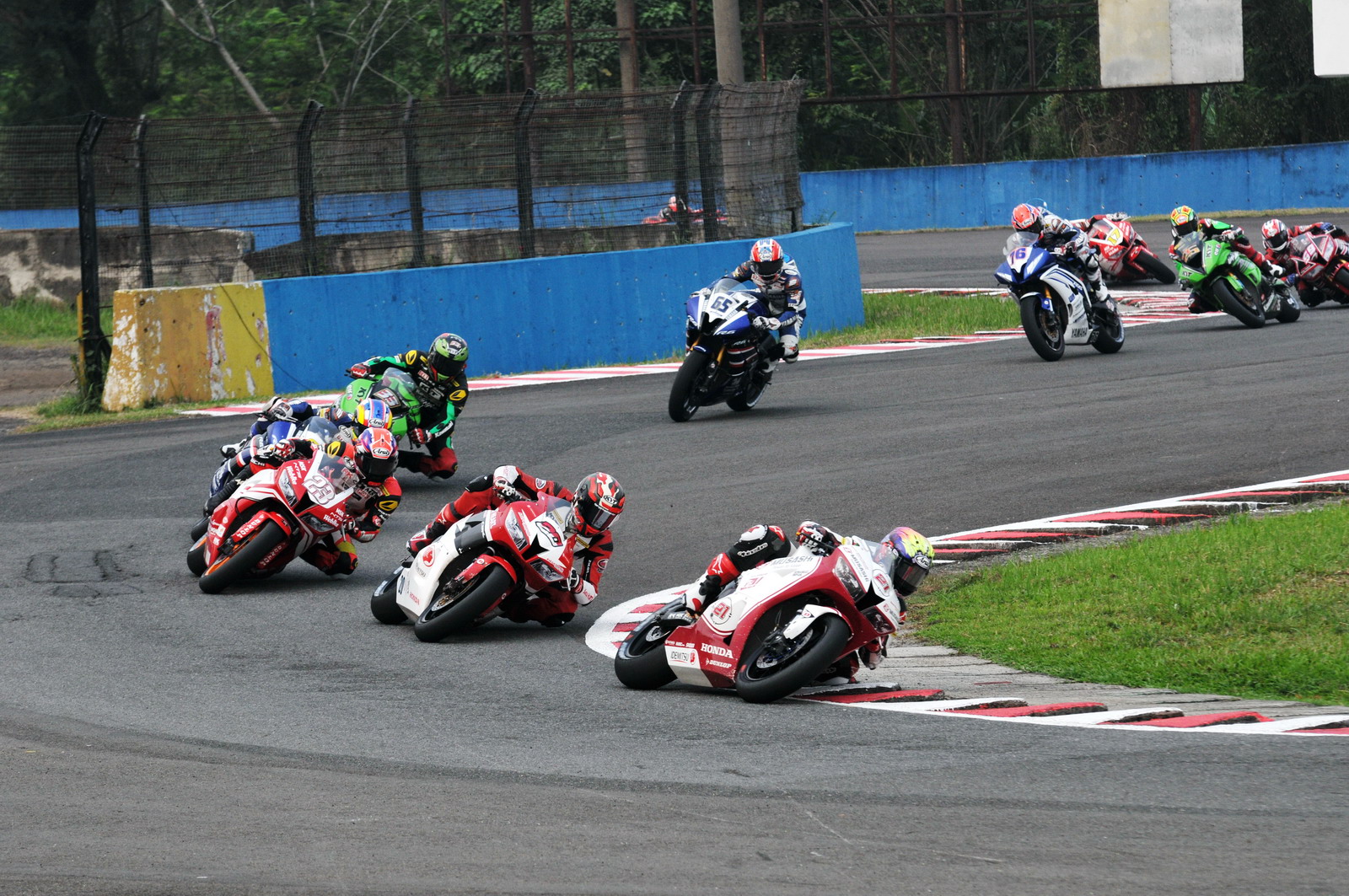 核心提示:在過(guò)去幾站表現(xiàn)并不算特別突出的印尼車手似乎一下子復(fù)活,起步不久后就帶出。賽事中段過(guò)后,現(xiàn)場(chǎng)呈三部 Honda 與一部 Kawasaki