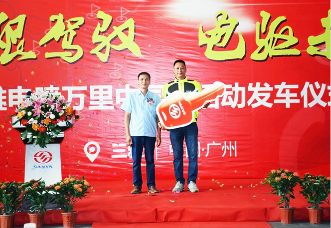 三雅公司總經(jīng)理李總將電噴摩托“鑰匙”交給車友代表,并宣布“三雅電噴摩托萬里中國行”活動(dòng)正式啟動(dòng)。