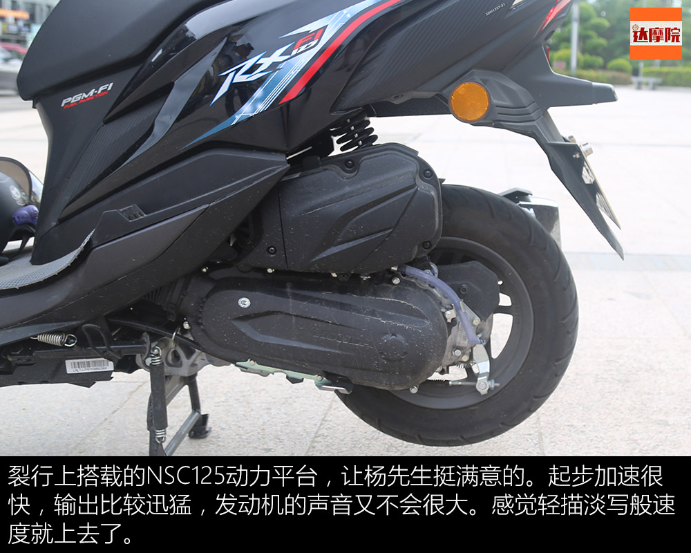 裂行上搭載的NSC125動力平臺,讓楊先生挺滿意的。起步加速很快,輸出比較迅猛,發(fā)動機的聲音又不會很大。感覺輕描淡寫般速度就上去了。