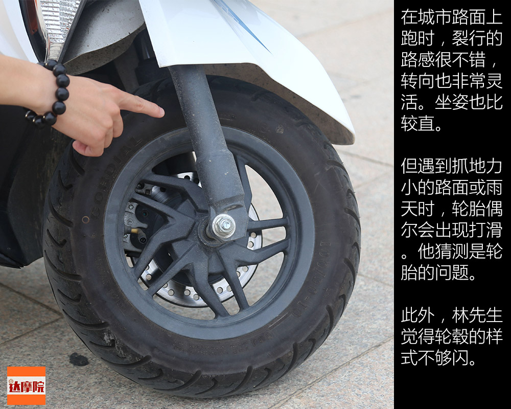 但遇到抓地力小的路面或雨天時,輪胎偶爾會出現(xiàn)打滑。他猜測是輪胎的問題。
