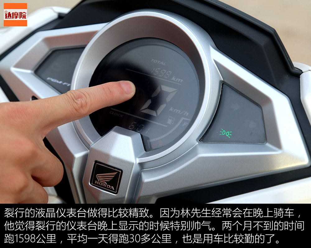 裂行的液晶儀表臺做得比較精致。因為林先生經(jīng)常會在晚上騎車,他覺得裂行的儀表臺晚上顯示的時候特別帥氣。兩個月不到的時間跑1598公里,平均一天得跑30多公里,也是用車比較勤的了。這可是日常代步的狀態(tài),不是專門跑測試的。