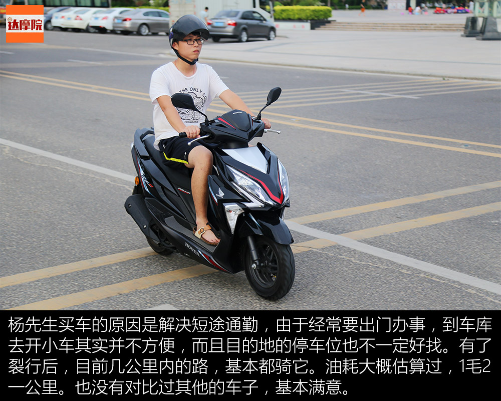 楊先生買車的原因是解決短途通勤,由于經(jīng)常要出門辦事,到車庫去開小車其實并不方便,而且目的地的停車位也不一定好找。有了裂行后,目前幾公里內(nèi)的路,基本都騎它。油耗大概估算過,1毛2一公里。也沒有對比過其他的車子,基本滿意。