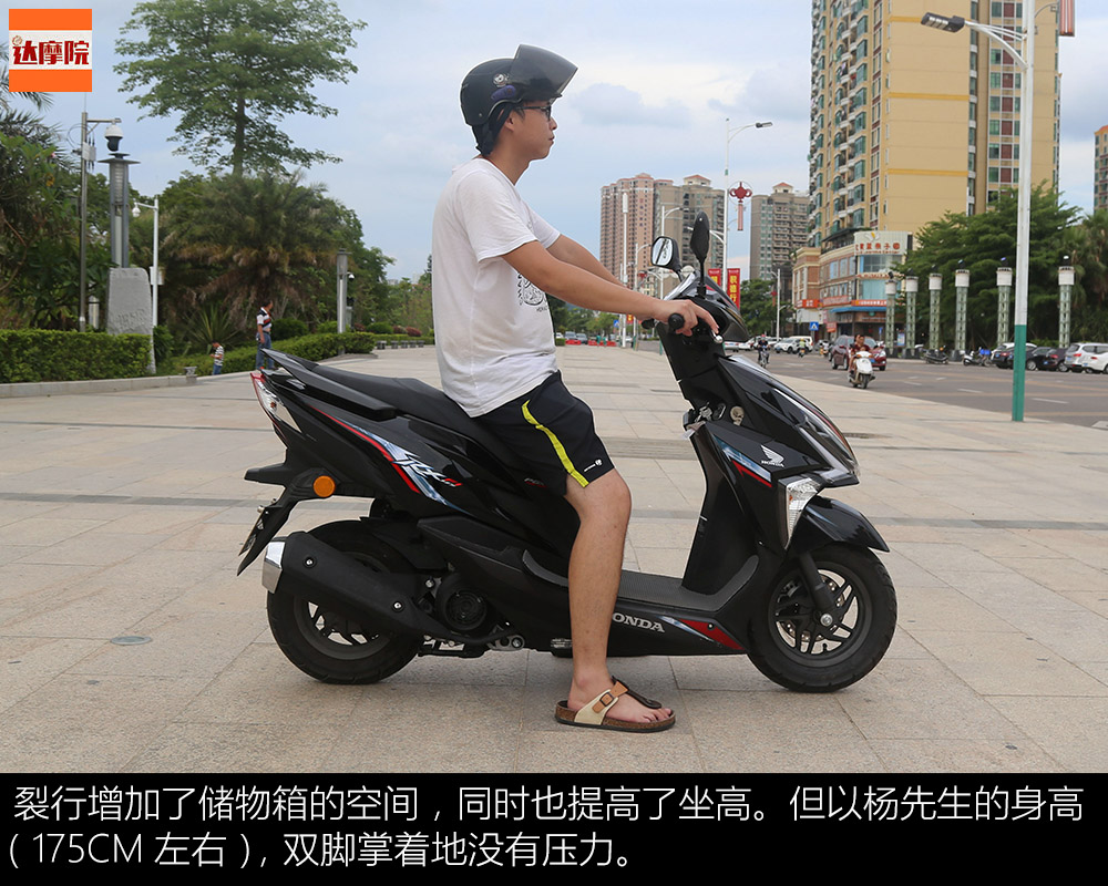 裂行增加了儲物箱的空間,同時也提高了坐高。但以楊先生的身高(175CM左右),雙腳掌著地沒有壓力。
