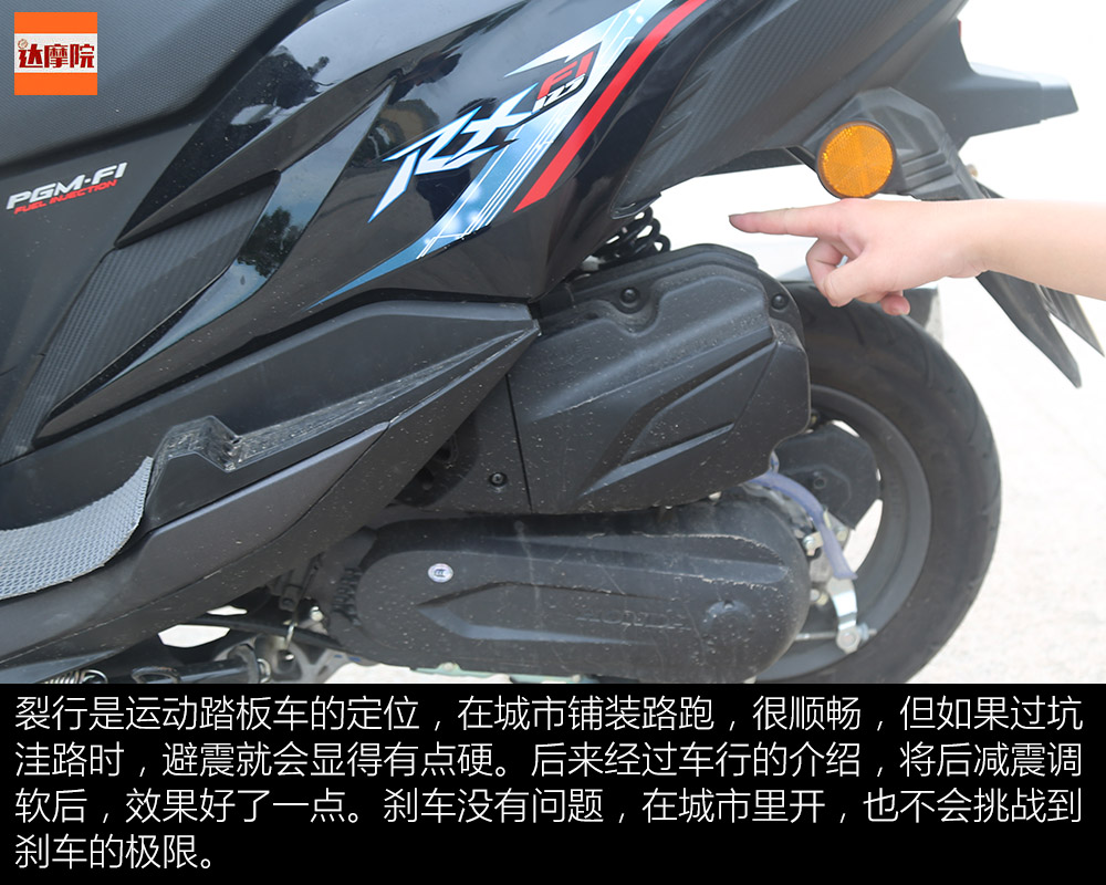 裂行的外觀和動力在同排量踏板車型都屬上乘,給油就走的那種感覺還是很好的。但減震行程有點短,過減速帶需要注意。