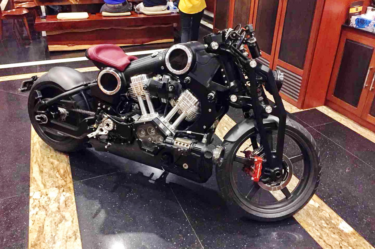 柬埔寨首都金邊,早前在當?shù)匾晃卉囉训募抑?,宴會廳的邊上就偶遇了這部手工作品。巨型的發(fā)動機散發(fā)著的暴力感,讓人對其瘋狂低扭充滿著想象力、甚至是畏懼。