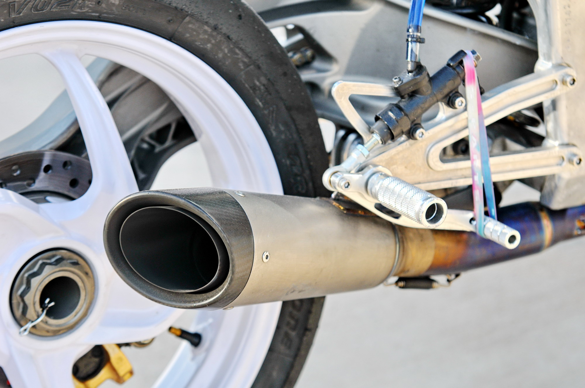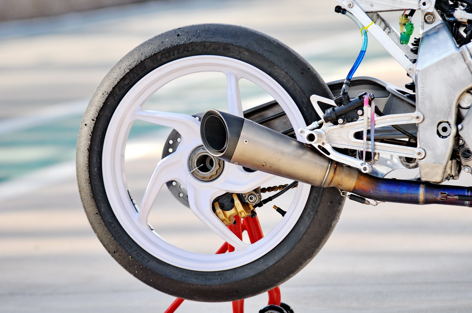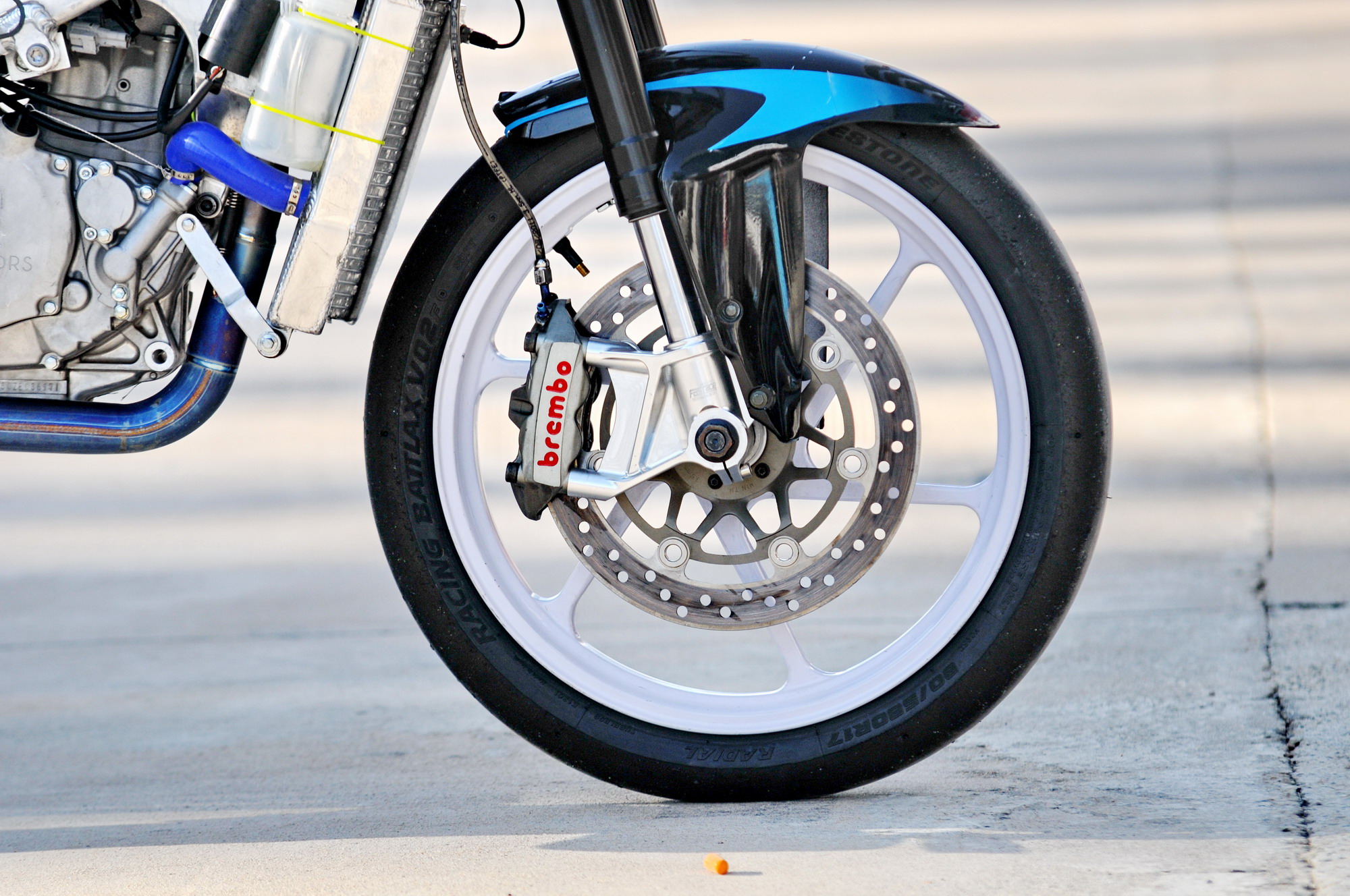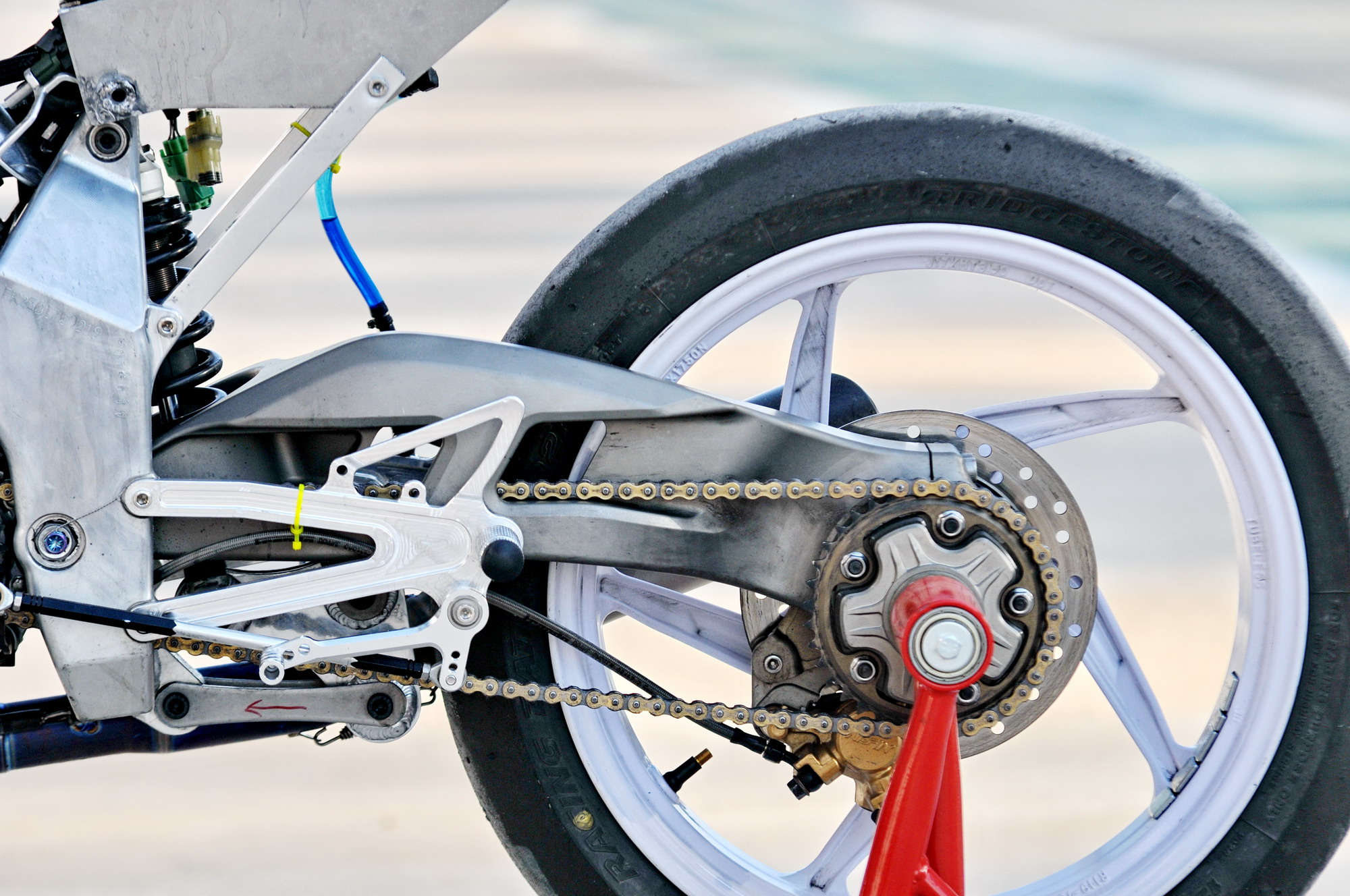 這部搭載單汽缸發(fā)動(dòng)機(jī)的賽車(chē),采用一副粗壯的鋁合金車(chē)架、后單搖臂的設(shè)計(jì),前懸掛、制動(dòng)系統(tǒng)都是一般量產(chǎn)車(chē)所難以采用的高配置。