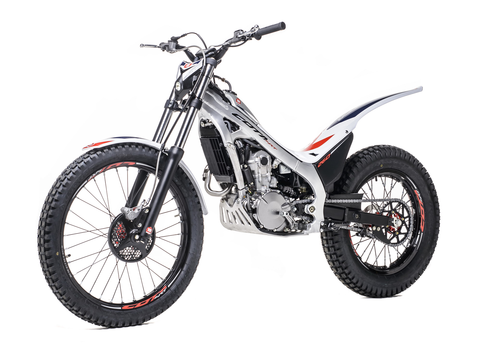 2018' Cota 4RT260 搭載一副水冷四沖程單汽缸、SOHC(Unicam)四汽閥的發(fā)動機,排汽量 259 cc,節(jié)汽閥口徑為 28 mm 的 PGM-FI 電子燃油噴注系統(tǒng),五檔的變速齒輪箱。車身使用一副粗壯的鋁合金車架,叉芯直徑為 39 mm 的正立式前叉。作為專用賽車,Cota 4RT260 的全車重量只有 74 公斤。