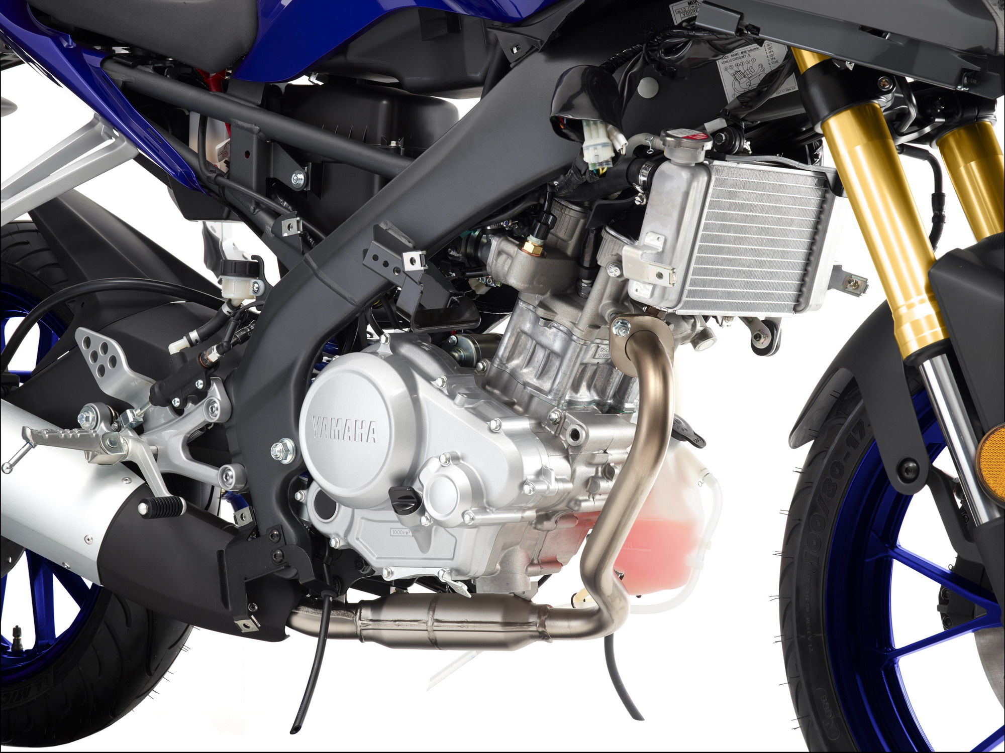 YZF-R125 搭載一副來自越野車 WR125R 改良而來的水冷四沖程單汽缸、SOHC 四汽閥的發(fā)動機,排汽量 124.7 cc,最大動力輸出 11 kw(約 15 匹)。車身使用一個合金闊面車架,倒立式的前叉,R 系列的家族外觀造型。