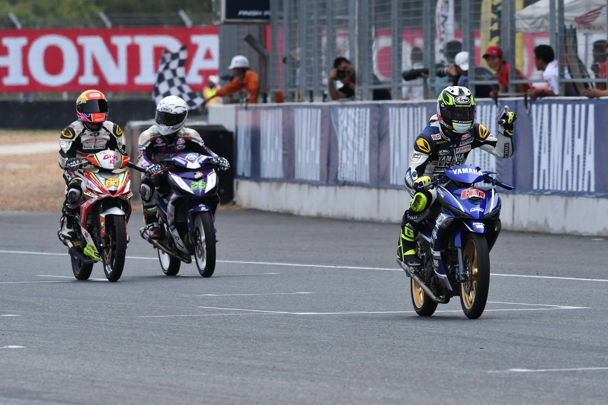 UB150 級別的大戰(zhàn)依然是要到最后一個彎道才分出了勝負(fù),印尼車手 W. A . Trilaksana 奪得了冠軍,馬來西亞車手 M. A. A. Musa 以 0.478 秒之差居第二,UMA Yamaha 車隊的馬來西亞車手 M. H. Md Fairues 落后頭車 0.578 秒拿到了第三。