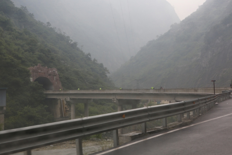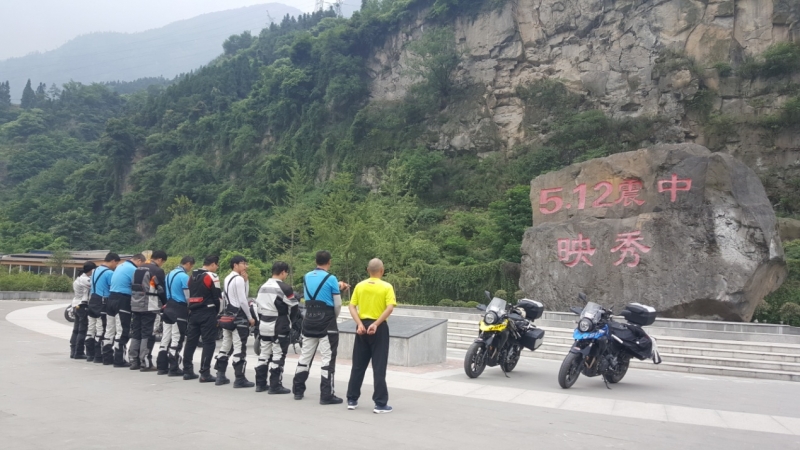 此行要經(jīng)過映秀——汶川地震遺址。穿過傳說中唯一沒倒塌、保護(hù)過眾多孩子的映秀中學(xué),來到了5.12地震紀(jì)念廣場,廣場上的巨石就是當(dāng)年從山體滑落的眾多巨石之一。雖然已經(jīng)過去了將近10年,但巨大的創(chuàng)傷仍就影響著我們每一個(gè),耳中不由響起那陣長鳴,各種場景歷歷浮現(xiàn)。