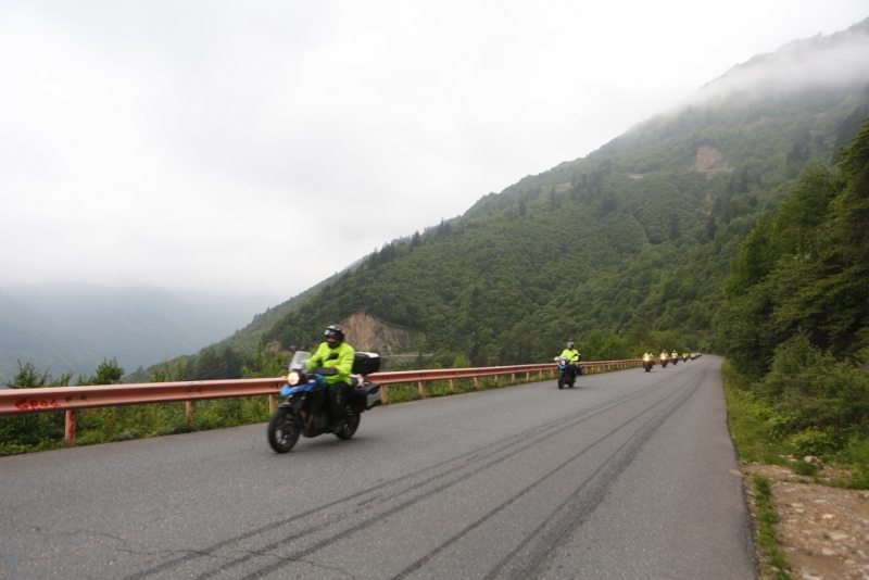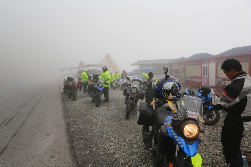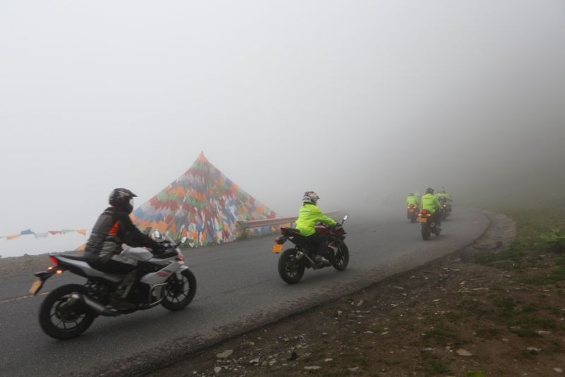 騎行至海拔3000多米時(shí),立即開啟云端模式,山道濃霧籠罩,車手們都意識(shí)到問題的嚴(yán)重性,立即放慢車速,開啟頭燈與雙閃,但當(dāng)有些地方能見度僅有五米左右的時(shí)候,這些都變成了心里安慰。而大家也知道,這里千萬不能停車,頭車成為車隊(duì)的眼睛,大家相互信任,緩慢前行,一路上遇到占道停車、濕滑隧道、對向不開燈的“幽靈車”,都順利避讓,走出云端。