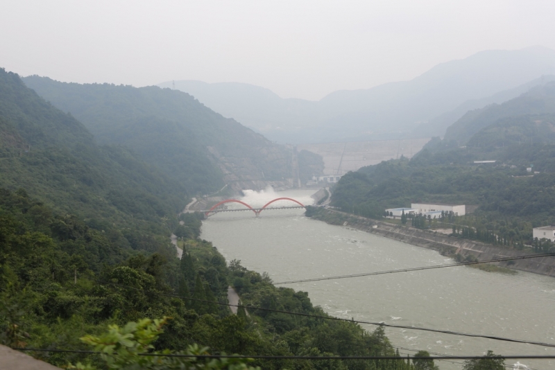下午4:30,過七盤關(guān)隧道,進(jìn)入四川。在廣元朝天區(qū)境內(nèi),車隊(duì)順著蜿蜒的山路一陣俯沖下到谷底,來到明月峽附近。嘉陵江畔明月峽,蜀道變通途。