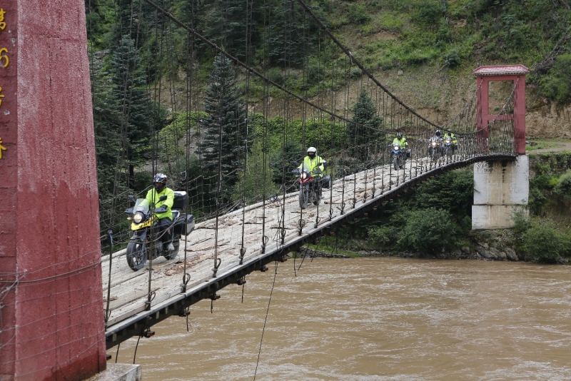 信心滿滿的隊員們剛出小金遇到的就是非一般的路面情況,過橋、砂石、峭壁一樣都沒有拉下,面對這高原地貌,外加各種惡劣條件,大家不但沒有畏懼,更變得興奮與積極了,因為高原的路況對于每一位摩友來說都是值得挑戰(zhàn)與回味的。