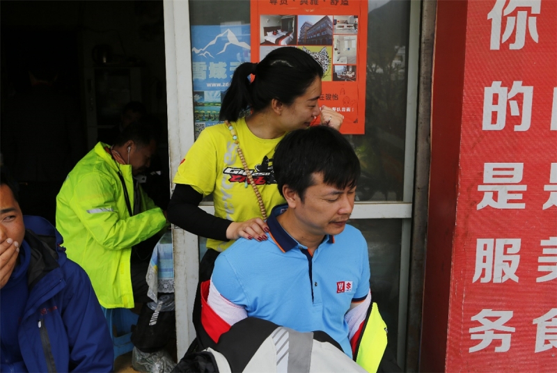 經(jīng)過一個早上的攀山,順利通過了4000米海拔,來到今天的目的地色達(dá)城。頭痛、頭暈、饑餓、饑渴困擾著騎手及團隊工作人員。在風(fēng)雨交織的行程中,一頓簡單的而溫暖牦牛肉面更是撐起了整個車隊。