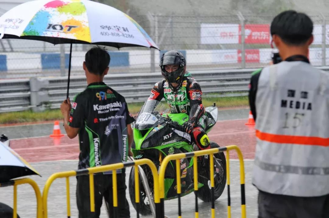濕滑的場地下,大家似乎都顯得小心翼翼。而袁際博的一騎絕塵,讓 SS600 組的比賽變成了天仕川崎車隊舞臺。