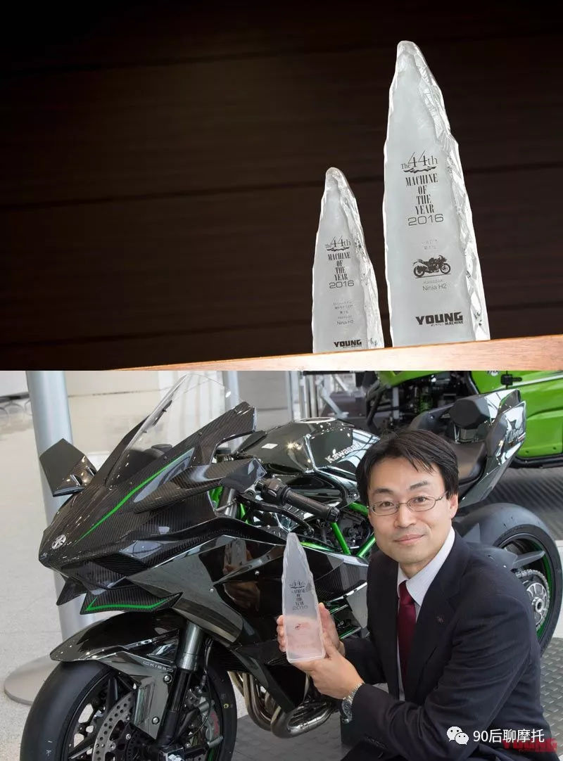 在2016年的排行榜中,成功在綜合組和日本廠牌車款組中達(dá)成二連霸的KAWASAKI Ninja H2/H2R。站在Ninja H2/H2R前面拿著獎(jiǎng)座的是研發(fā)組長-市聰顯先生。