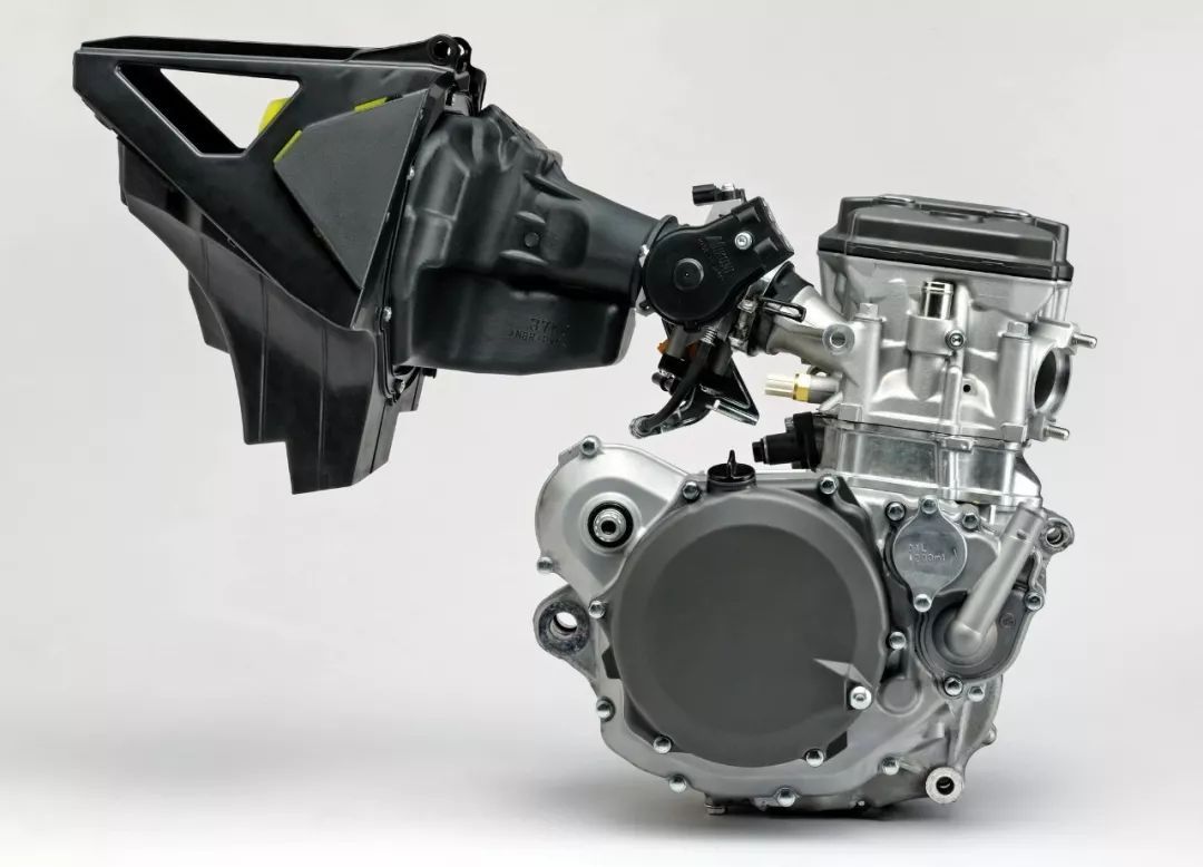 2018/2019 RM-Z 450 搭載一副水冷四沖程單汽缸、DOHC 四汽閥的發(fā)動(dòng)機(jī),缸徑、行程為 96 mm x 62.1 mm(接近 1.55:1 的缸徑/行程比)、壓縮比 12.5:1,排汽量 449 cc,五檔的變速齒輪箱參考外媒的數(shù)據(jù),在后輪輸出測(cè)試之下、該車(chē)的最大動(dòng)力輸出大約是 55 匹,估計(jì)以曲軸輸出的測(cè)試方式之下、最大動(dòng)力輸出約為 60 匹。與上一代的 2017' RM-Z 450 相比,2018/2019 款的 RM-Z 450 發(fā)動(dòng)機(jī)內(nèi)部采用了大量的新設(shè)計(jì),包括了采用加強(qiáng)肋設(shè)計(jì)、可以承受更高峰值功率輸出的新活塞,新的凸輪軸;新的汽缸進(jìn)汽道以及進(jìn)汽歧管設(shè)計(jì),讓進(jìn)入汽缸燃燒室的混合汽呈旋轉(zhuǎn)渦流狀態(tài),流量效率比上一代的 2017 款增加了 25%;與之相對(duì)應(yīng)的是空氣過(guò)濾器的設(shè)計(jì),也從 2017 款的稍微彎曲的進(jìn)汽、修改為接近直進(jìn)式的進(jìn)汽設(shè)計(jì)。