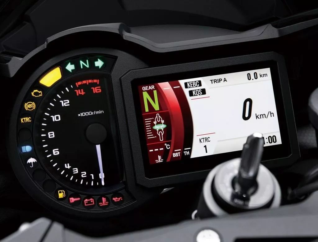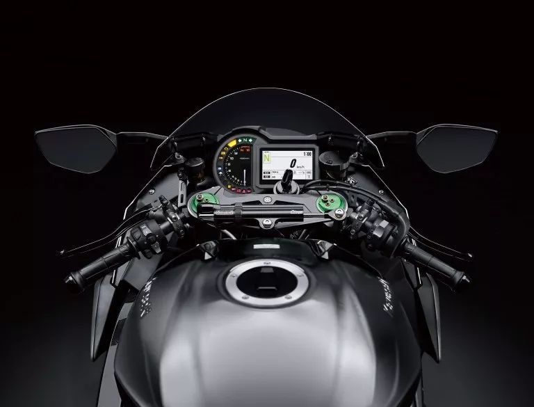 除了動(dòng)力上的變化,2019款Ninja H2使用了普利司通RS11輪胎。更新了H2 SX樣式的TFT全彩液晶儀表,有四種顯示模式,可以通過(guò)藍(lán)牙和手機(jī)連接。制動(dòng)卡鉗從原來(lái)的Brembo M50升級(jí)為了Brembo Stylema,這款卡鉗之前只在杜卡迪V4上使用,相比于M50散熱效果更好。