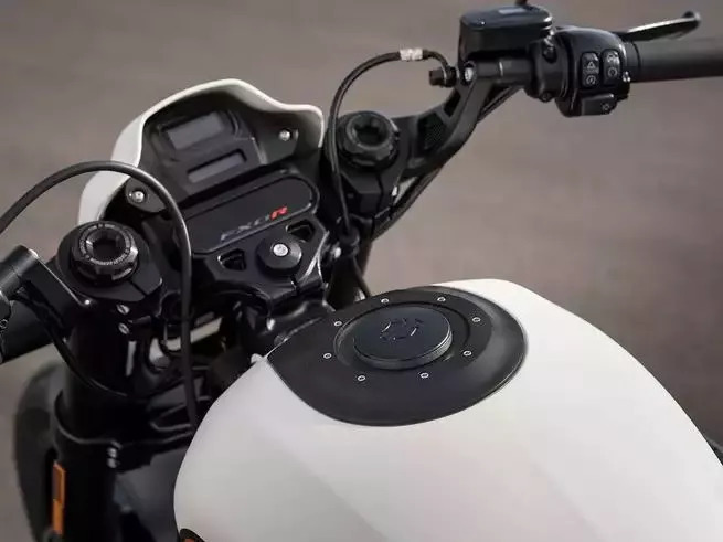 而在一些小細(xì)節(jié)上,這款FXDR 114也有著與眾不同的設(shè)計(jì)。如果Fat Bob是個(gè)健壯的大漢,那FXDR應(yīng)該算是精悍的年輕人,相比一般的哈雷,它的線條感更加流暢,尤其是延長(zhǎng)了油箱之后,讓整車看上去更加流暢,較短的車尾增加了一定的動(dòng)感。LED的頭燈和轉(zhuǎn)向燈加上分體式車把以及倒置式前減震,都預(yù)示著這款車比一般的哈雷有更多運(yùn)動(dòng)基因。