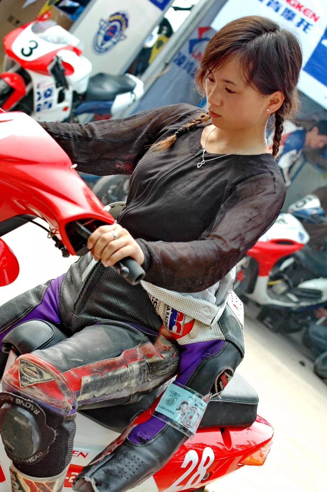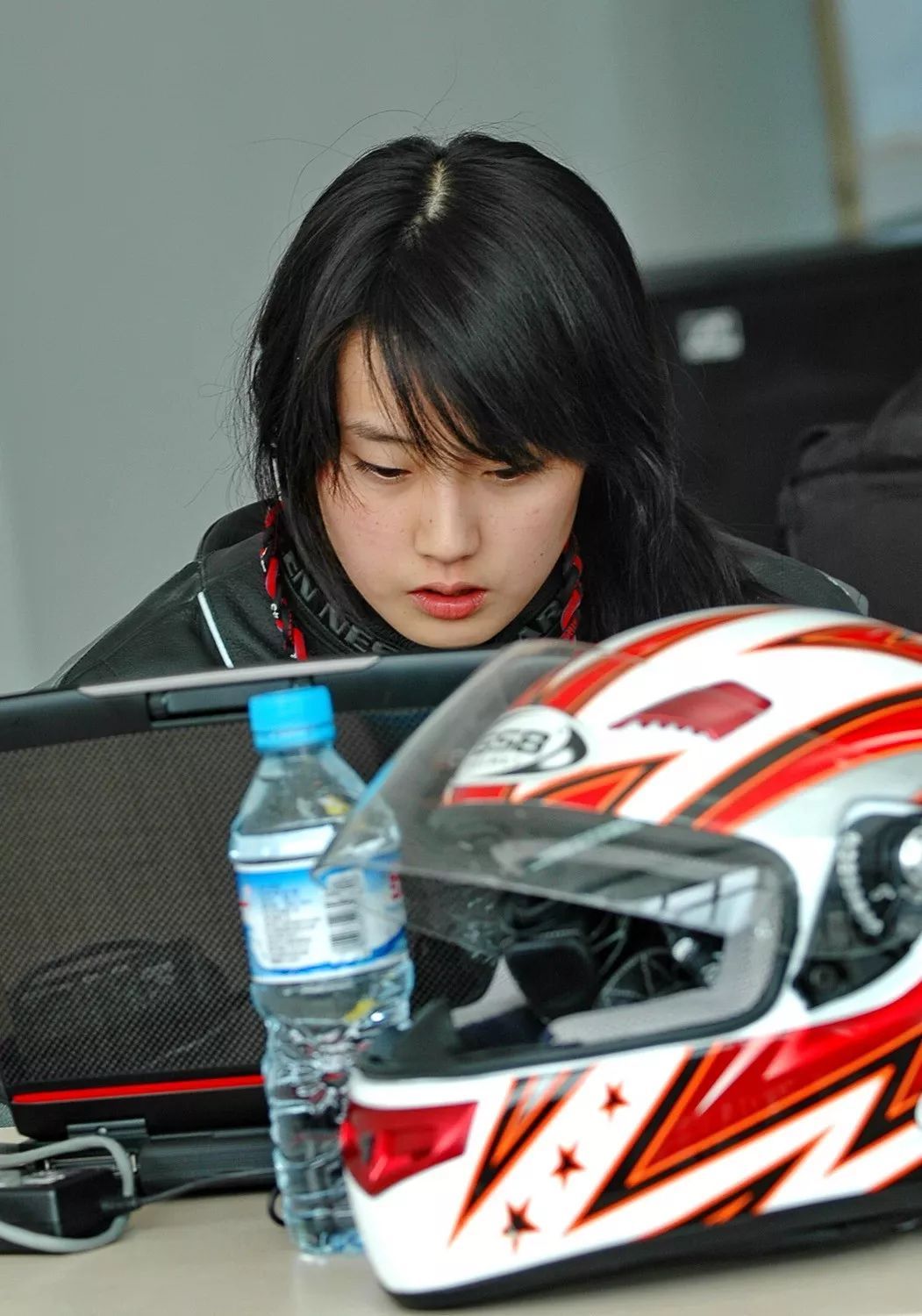 剛從跑道上回到維修區(qū),滿頭大汗、頭發(fā)蓬松再加上素顏之下,把現(xiàn)代公主通常首先需要照顧的顏值、儀態(tài)都丟一邊去,依舊懶理那些來來往往、前仆后繼的鏡頭,自顧自地查找賽車的問題,也許這就是傳說中的女漢子本色了。
